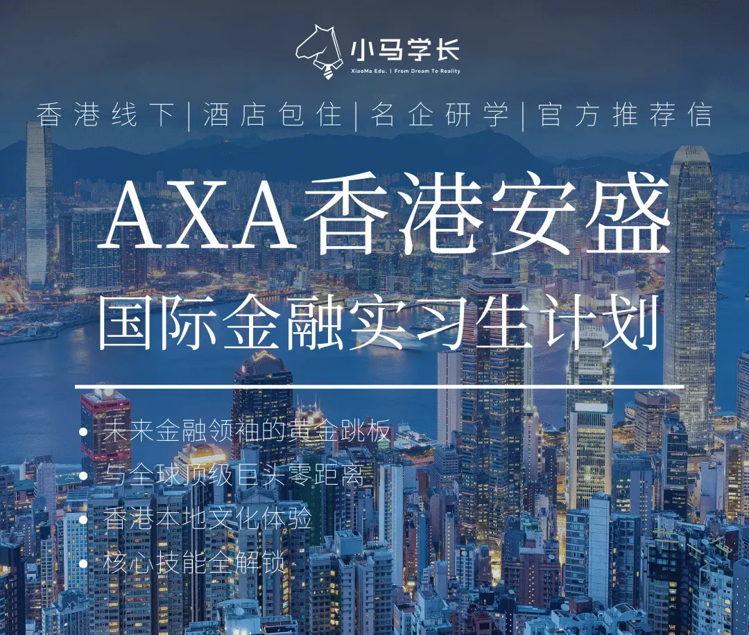 AXA香港国际金融实习生计划——由全球顶级金融巨头法国安盛集团(AXA)香港总部与高顿「小马学长」强强联合,专为未来金融领袖打造的顶尖项目。