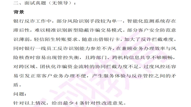 2026年中国农业银行春招笔试已经结束,面试估计很快开始的,农行面试主要形式是:半结构化+无领导小组+对抗赛;历年农业银行面试真题+解析,都是十四年以上面试经验的李老师亲自解析;视频也录制到位,包含自我介绍、求职动机、人际关系、时政热点、演讲、无领导小组、对抗赛等常考题型,当然除去视频以外,还有讲义和经济金融面试热点话题。要李老师视频的同学,可以有答疑和修改自我介绍,都是李老师负责;单要真题,没有这个福利!寻求免费的同学勿扰!