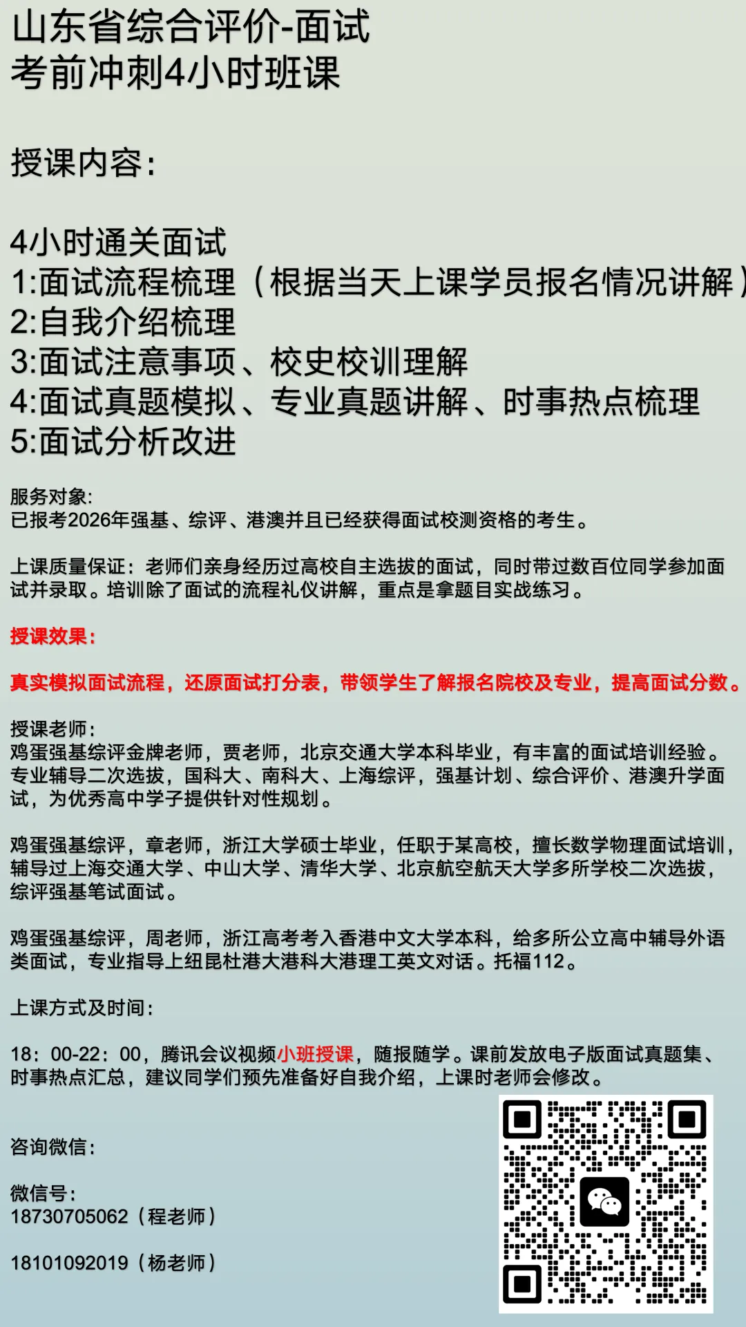 🎓 师资力量:985/211 院校背景,3 年 + 综评培训经验,部分参与高校面试评审