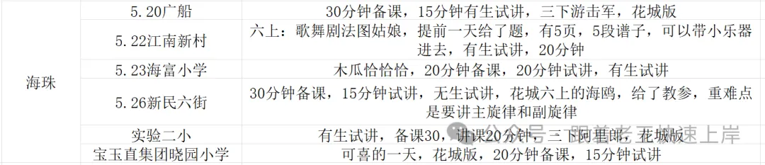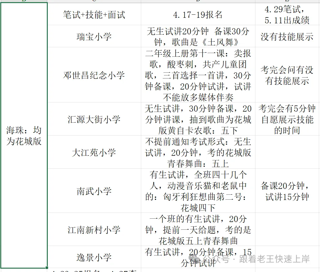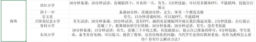 海珠的考情比较杂:✅第一,海珠往年的有一半是有生试讲,有一半是无生试讲,因为都是各个学校自己举办考试,不是教育局统一。✅第二,技能方面,海珠的学校往往都是展示自选的技能,往年的规律是,如果这个学校是有生试讲,一般都不要求再展示技能(因为本身有生试讲,就是要把技能融入在讲课过程中。)✅第三,海珠的小部分学校会要求做试讲PPT,但这种一般给的备课时间相对会比较长,比如一个小时,或者提前一天给题。