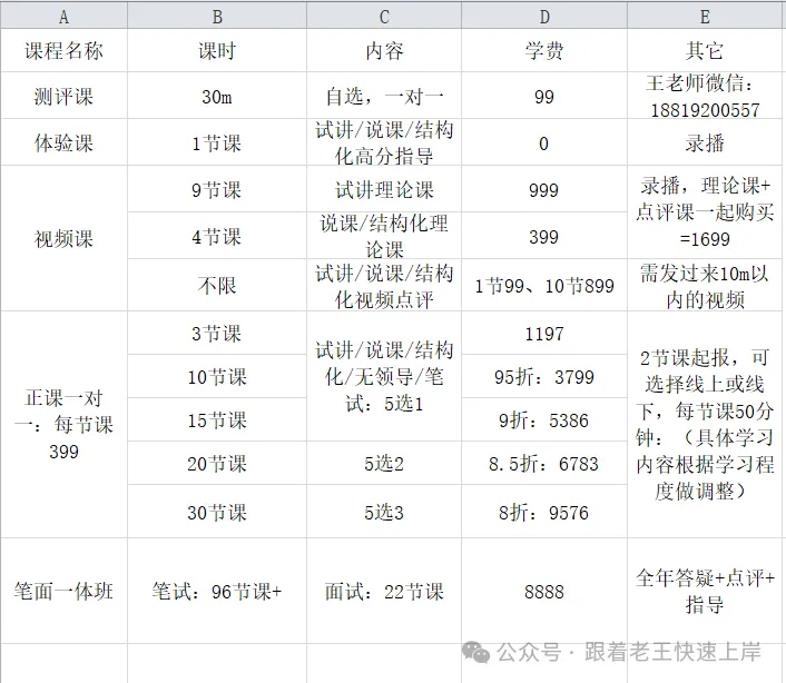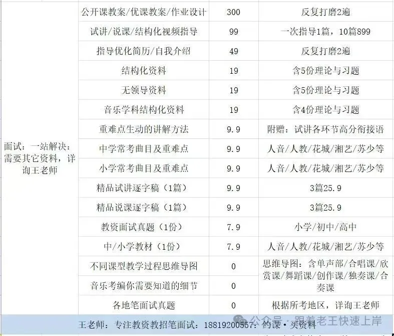 然后王老师这边也有视频点评课,就是你把自己的试讲十分钟的视频发给王老师,王老师针对你的视频进行10分钟左右的点评,99块钱是一个视频点评,10节视频点评的话是899。