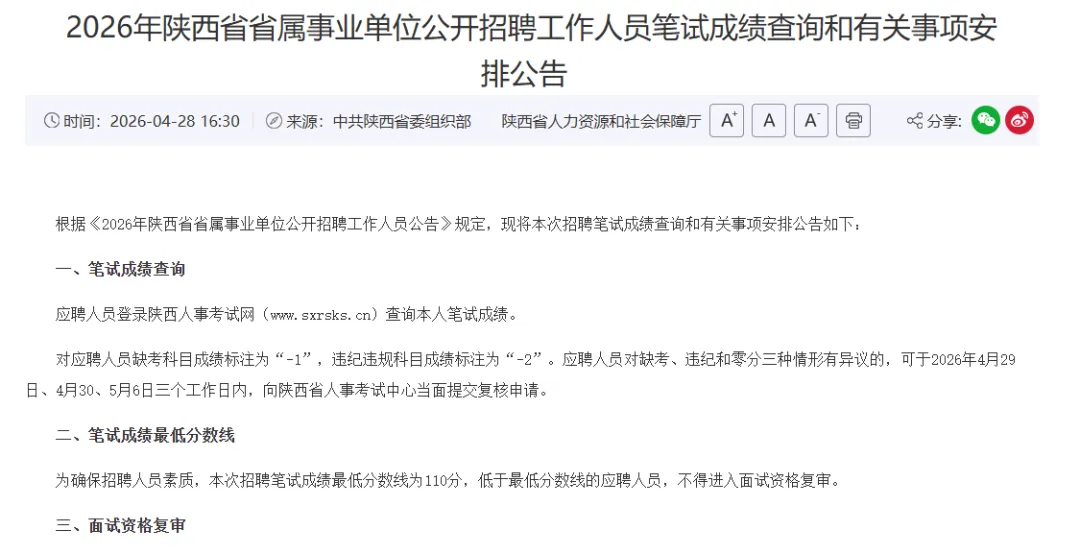 26陕西事业编笔试成绩开放查询!