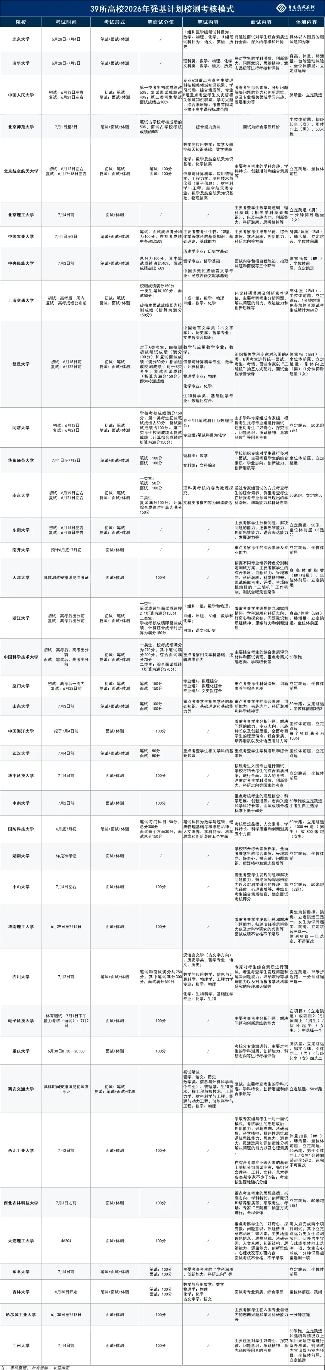 39校强基校测面试安排