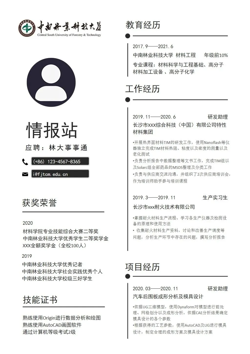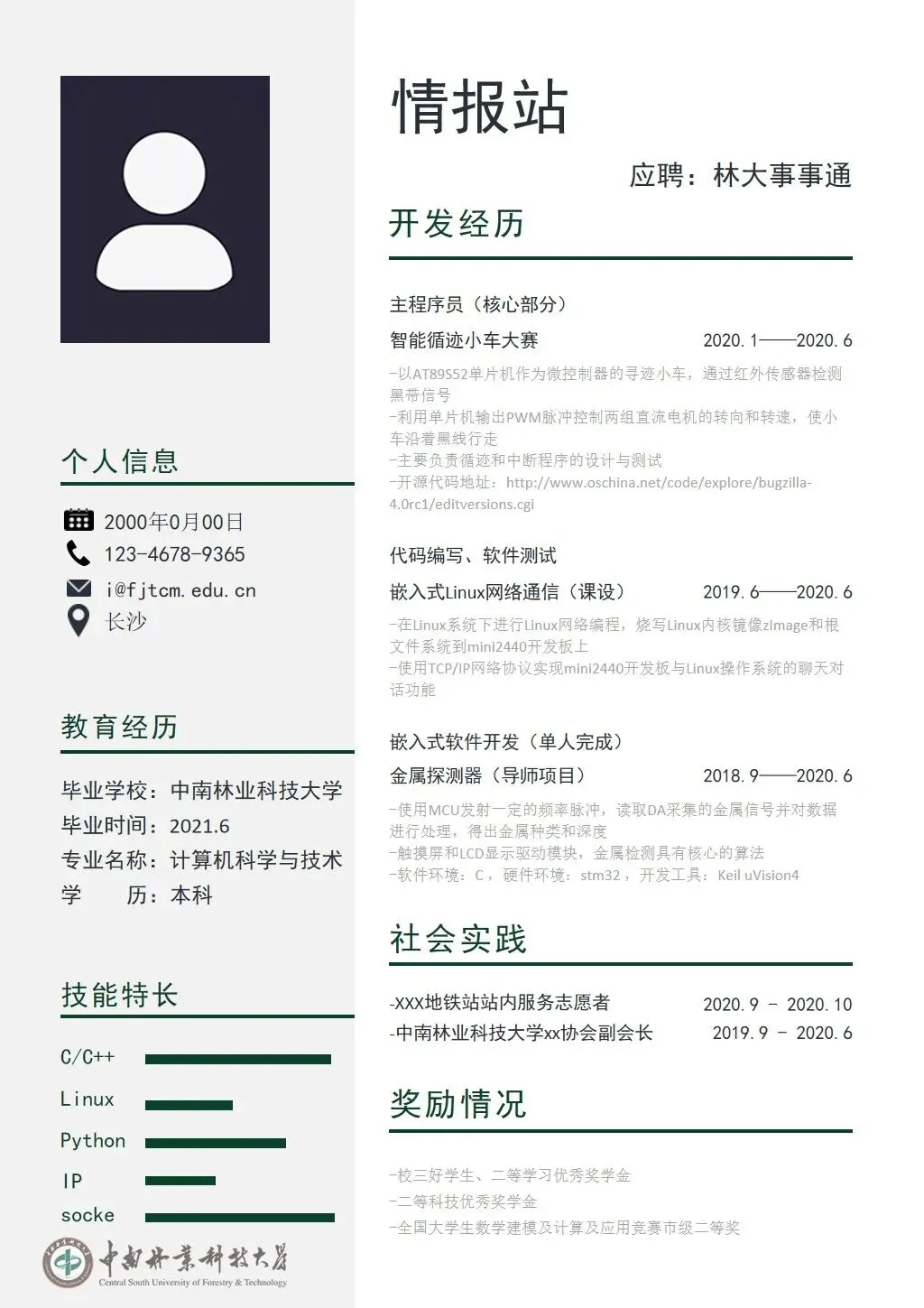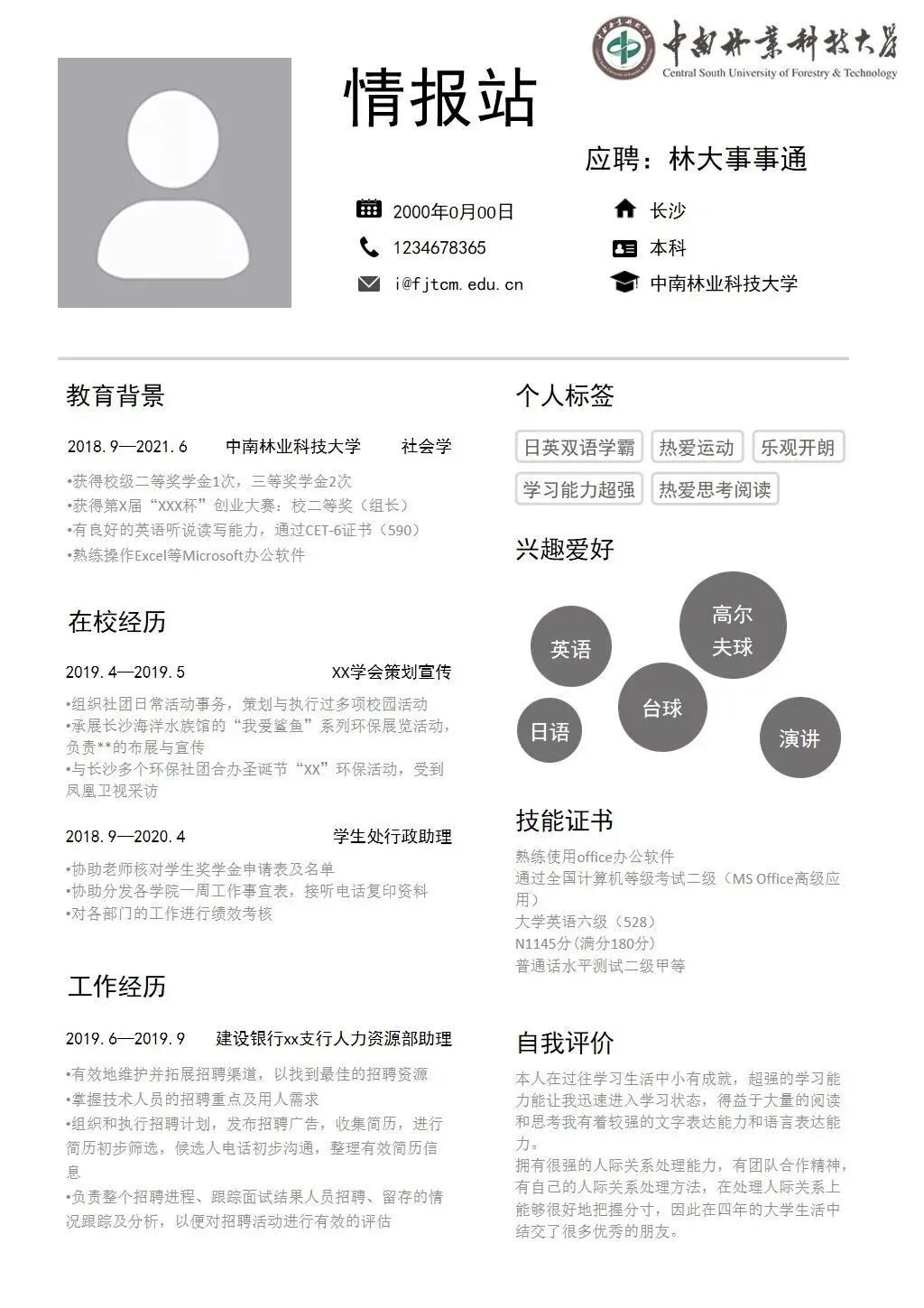 中南林业科技大学专属简历模板
