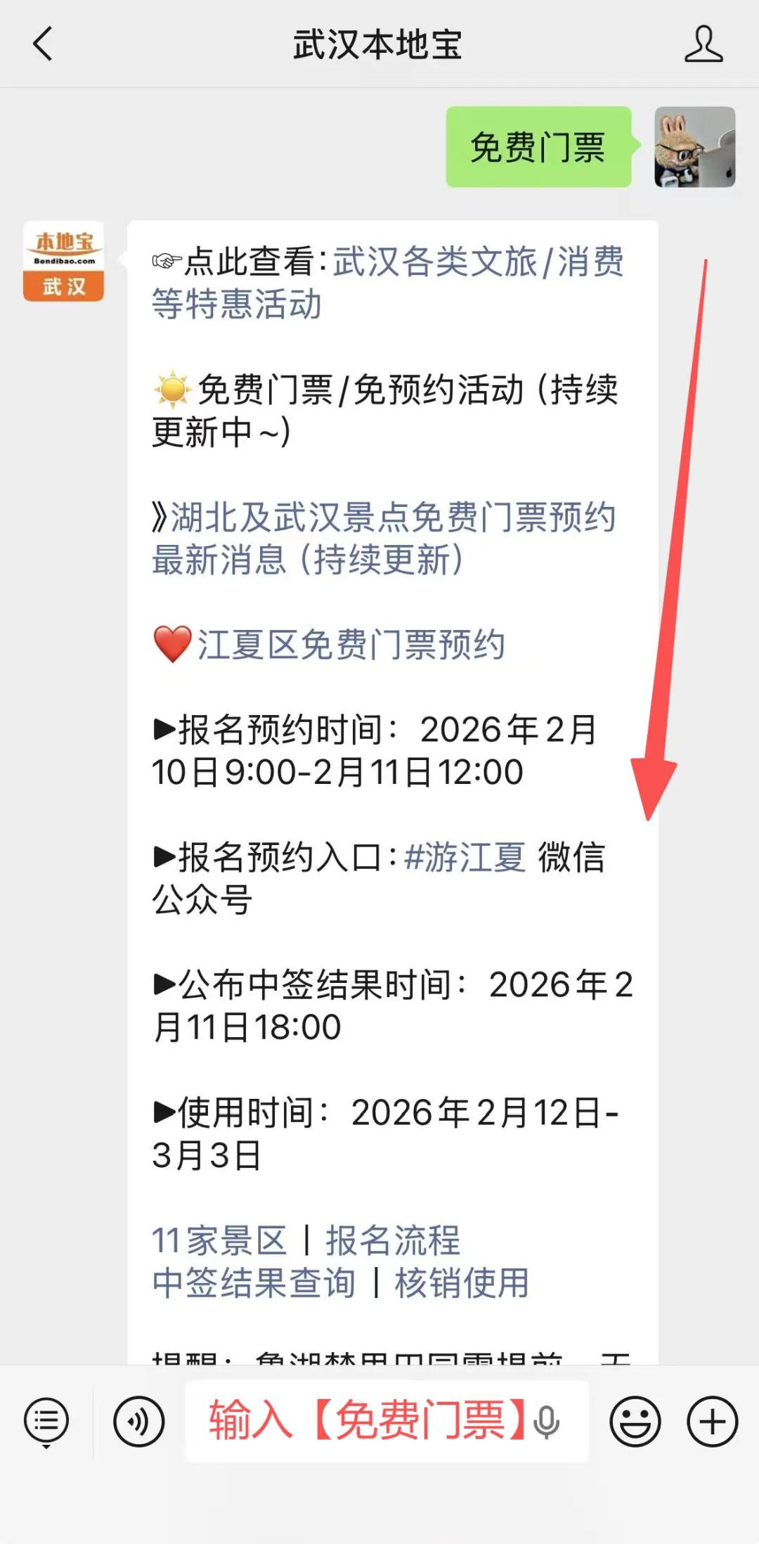 在微信聊天页面回复【免费门票】