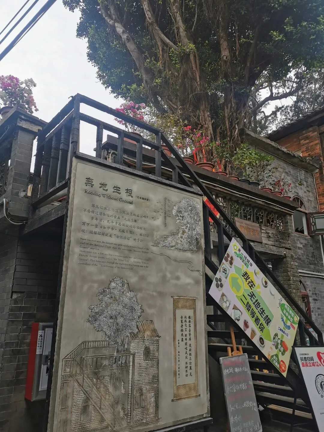 景区内外处可见古建筑群,青石板路、古井、古榕等,构成岭南古村落风貌,展现传统生活场景。最神奇的是古灶神榕,树龄超400年,与龙窑相伴生长。榕树根系紧贴窑体,历经高温仍枝繁叶茂,被视为窑区守护神,当地有“摸一摸榕树头,一世无忧愁”的传说,是景区标志性景观。
