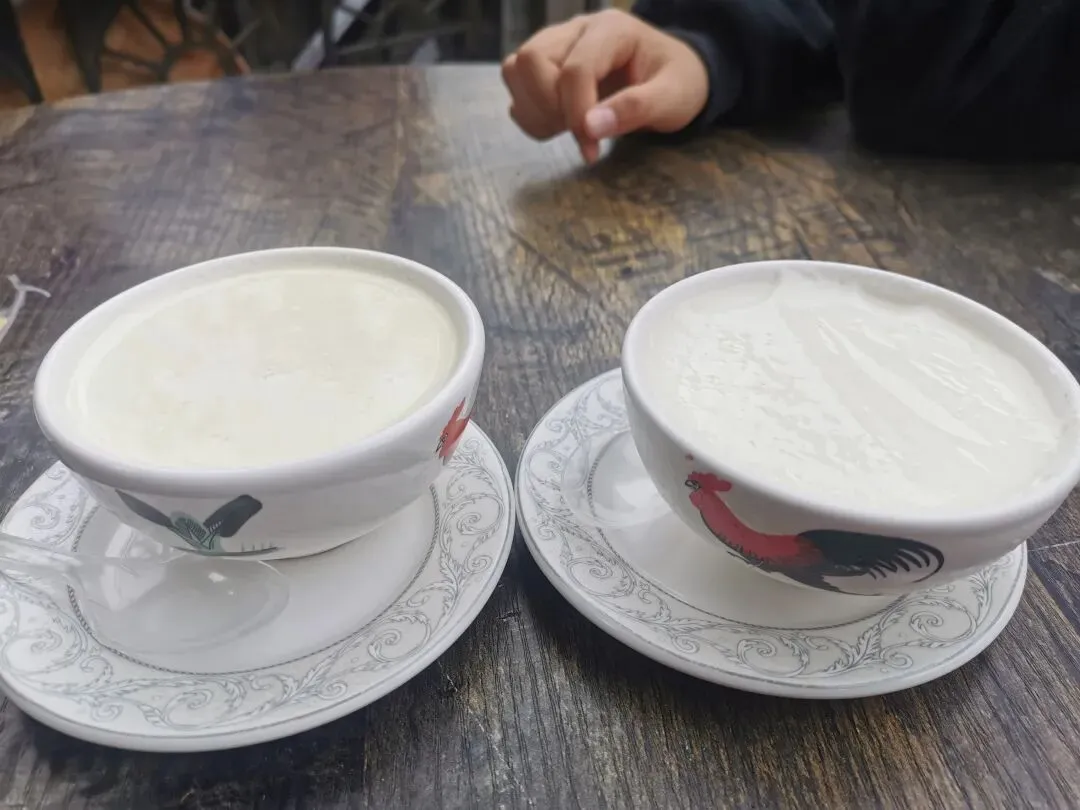 景区内还有很多以陶瓷元素打造的特色景观,马槽瀑布由马槽涌水而成;古瓦瀑布以古瓦堆砌;大缸瀑布由365个大小不一的大缸组成,寓意一年365天红红火火,是景区内的自然与人文结合的景观亮点。逛得有点累了,恰巧遇见“无地生根”景点二楼有个茶亭,便登上二楼雅座歇息一下品尝了佛山特色美食“双皮奶”。