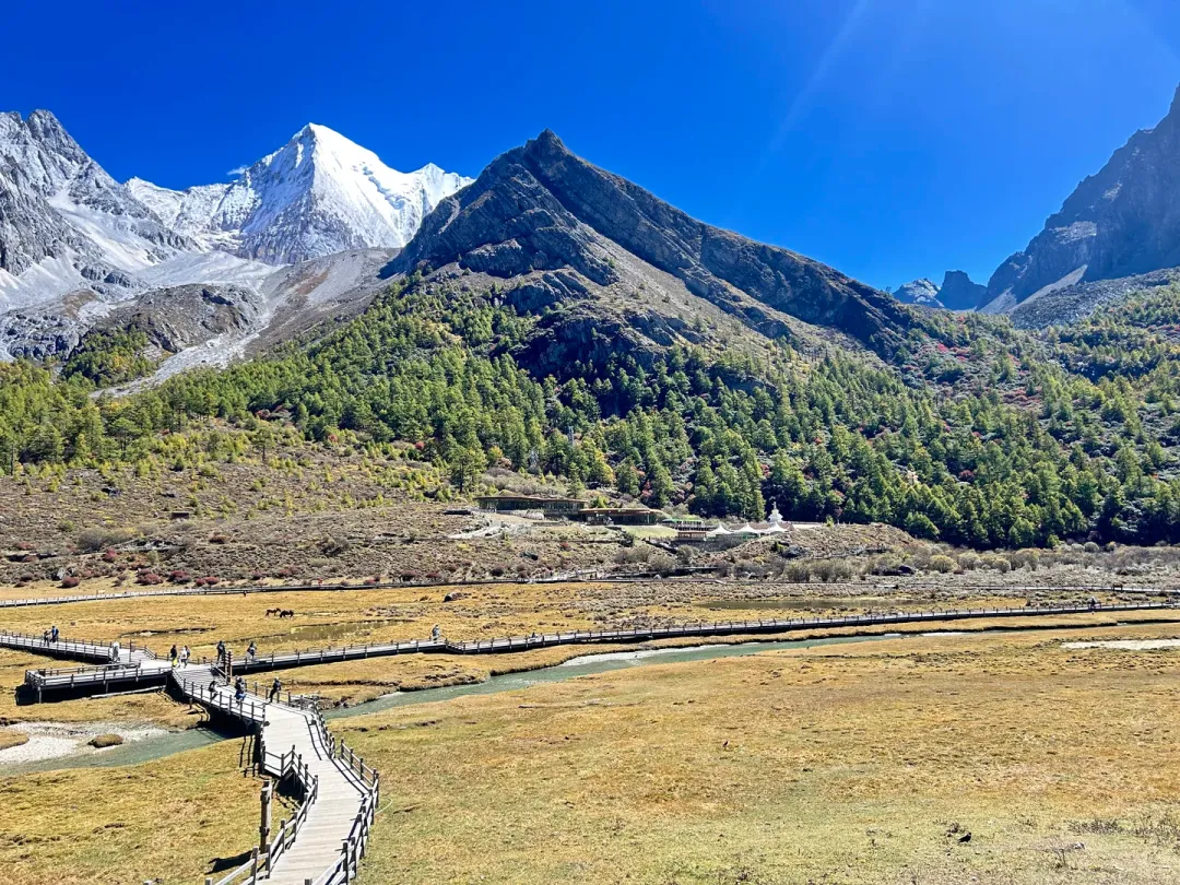 稻城亚丁被誉为“蓝色星球上的最后一片净土”,三座神山(仙乃日、央迈勇、夏诺多吉)巍峨圣洁,珍珠海、五色海、牛奶海如宝石般镶嵌其间。那份纯净与壮美,恰如诗中所绘:“此景只应天上有,人间能得几回闻。”