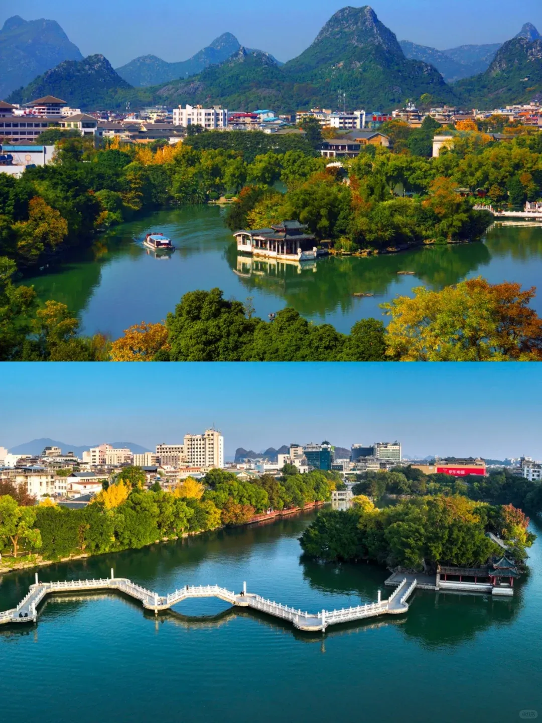 通过免费的城市滨水步道,就能将漓江、桃花江和四湖美景尽收眼底,真正实现“人在画中游”。