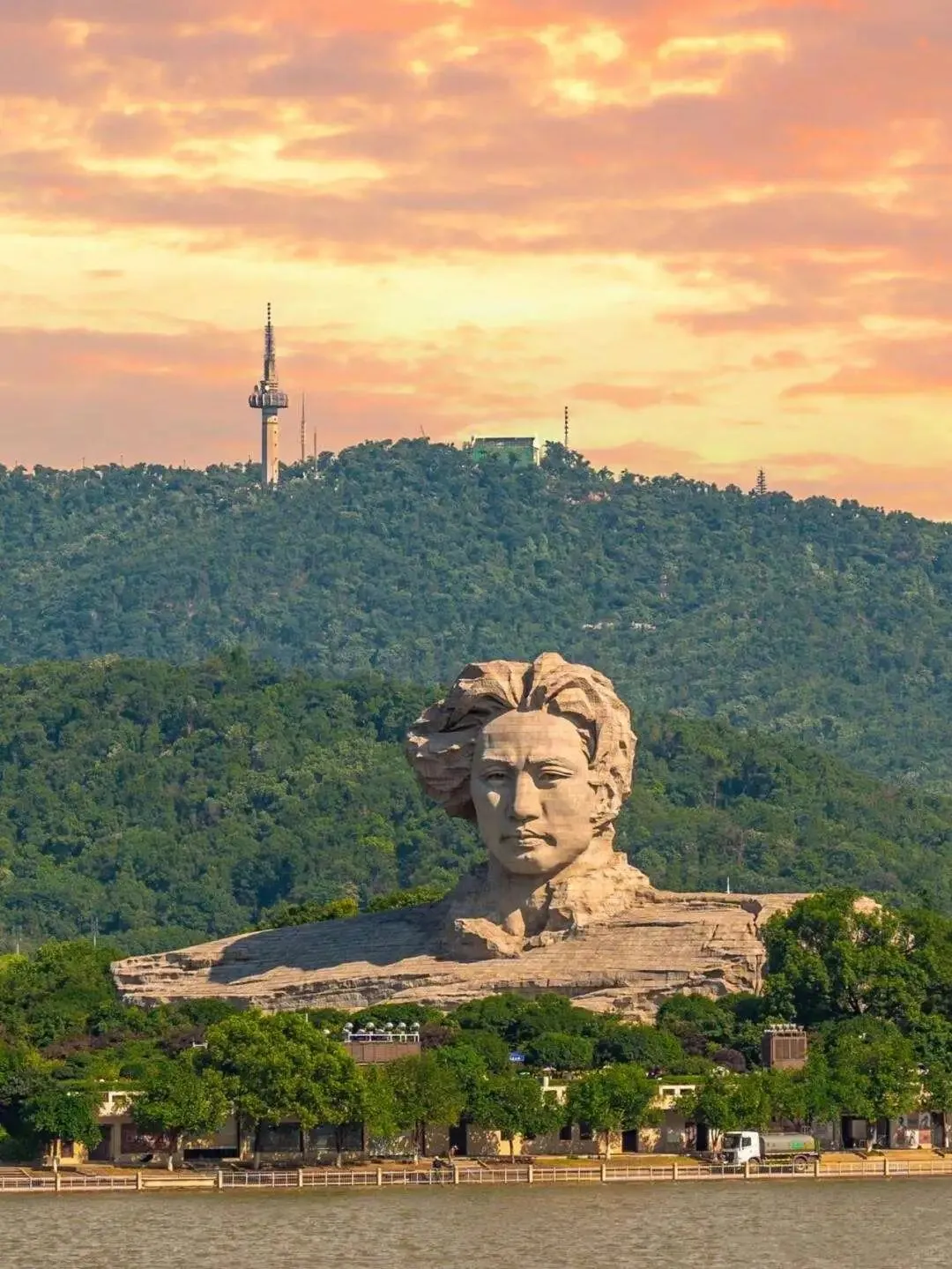 雕像脚下看湘江北去,江风能把衬衫吹得鼓起来。.本地人傍晚来.跑步.,外地.人坐.小火车环岛,.都没.人拦.着你上岛。冬天有梅,秋天有.橘,.就是个敞开了逛的大公园。