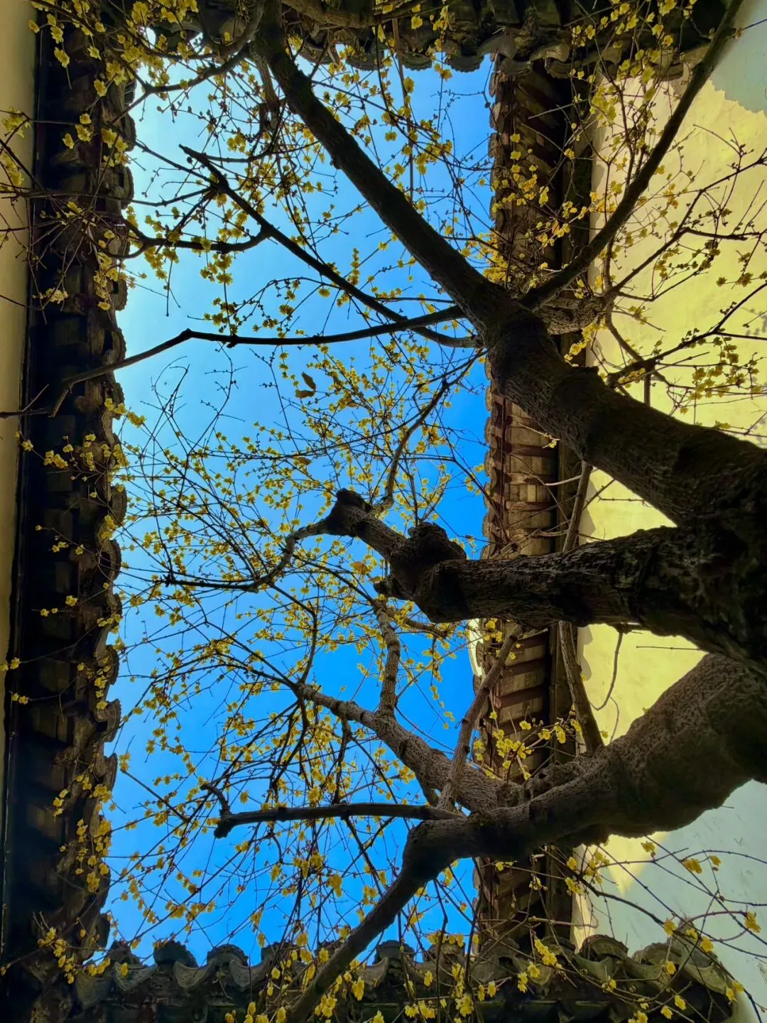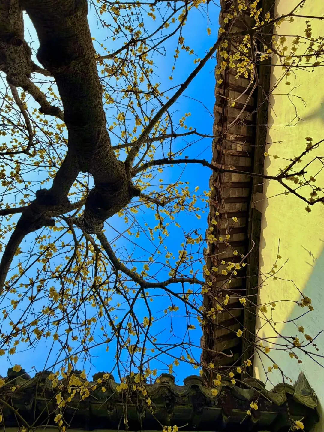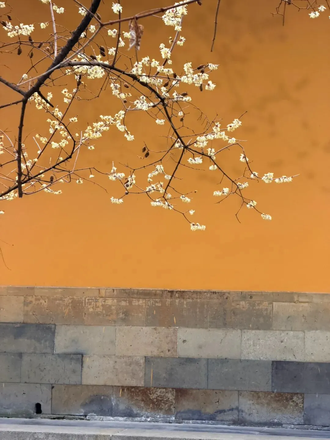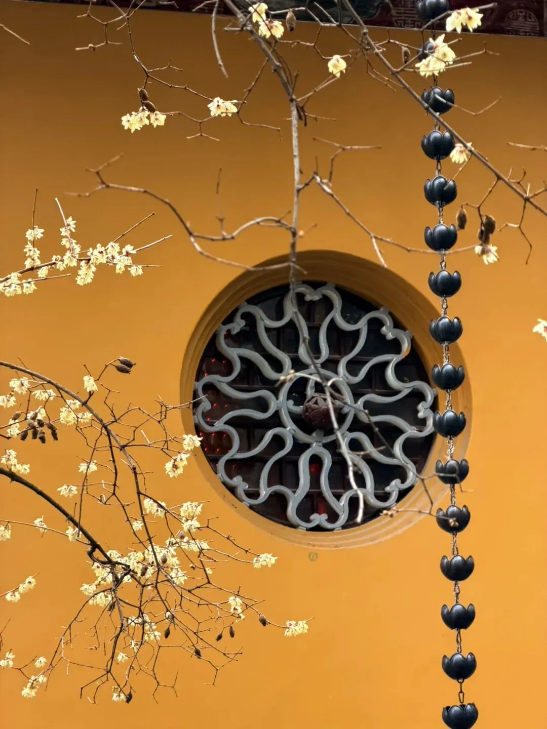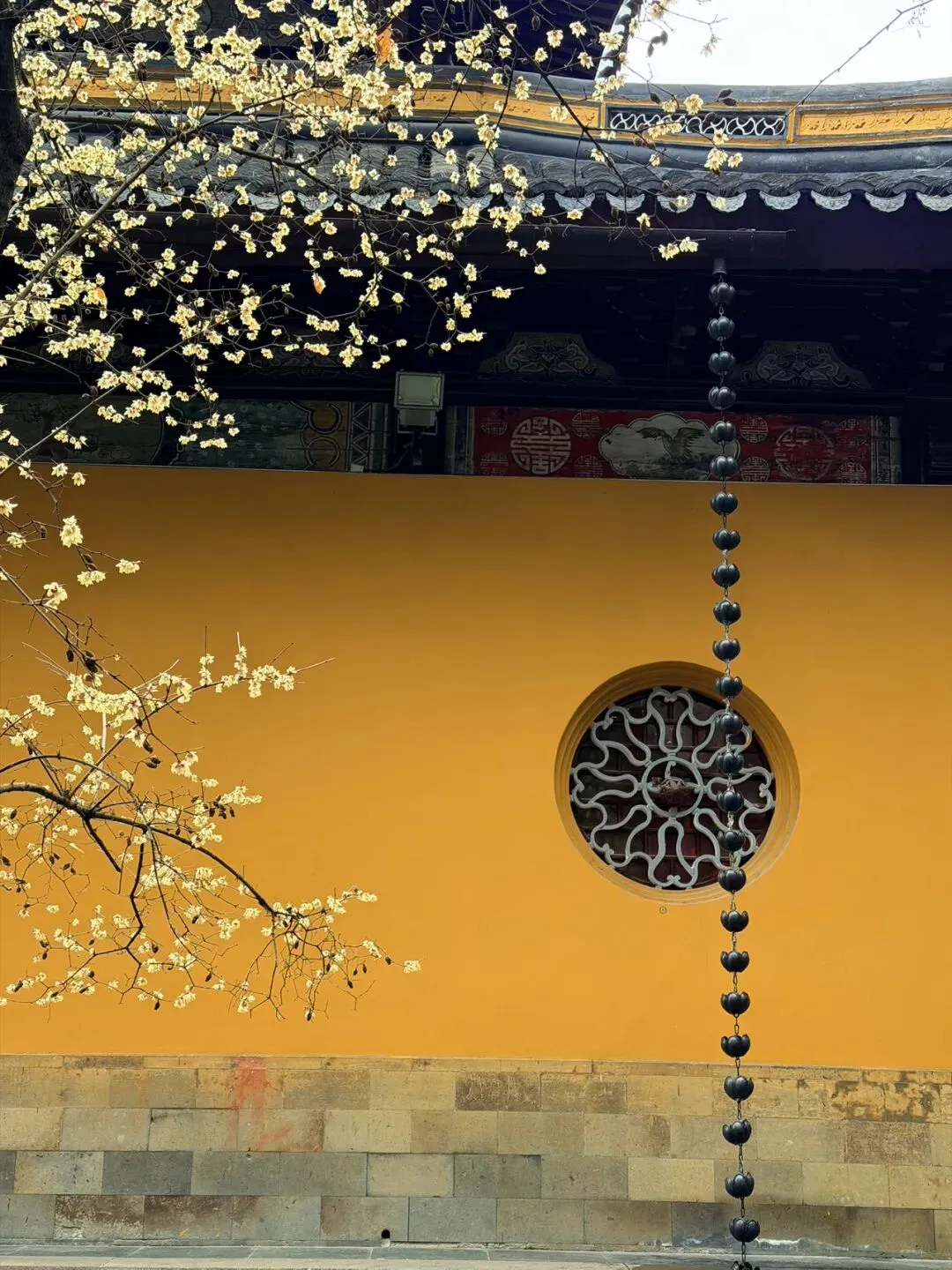 西园寺的黄墙梅花是苏州冬日一景,古朴的黄墙与淡雅的蜡梅相映,别具禅意
