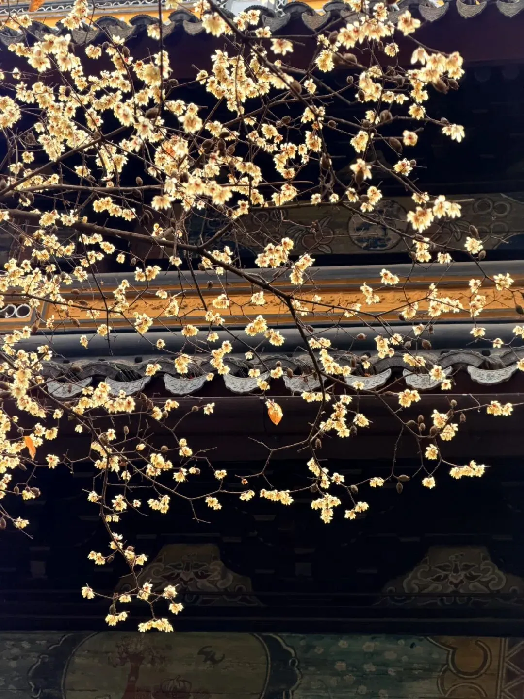 ✅核心亮点:这里是苏州热门的赏梅打卡地之一。古寺的黄墙和彩绘为背景,衬托出蜡梅的清雅古朴。寺内还有许多猫咪漫步,为画面增添生趣。