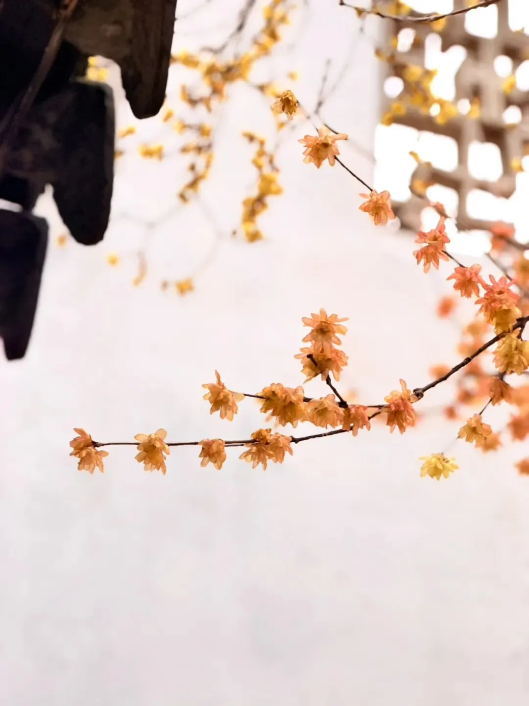 看点:腊梅与江南竹影相互映衬,氛围清雅。