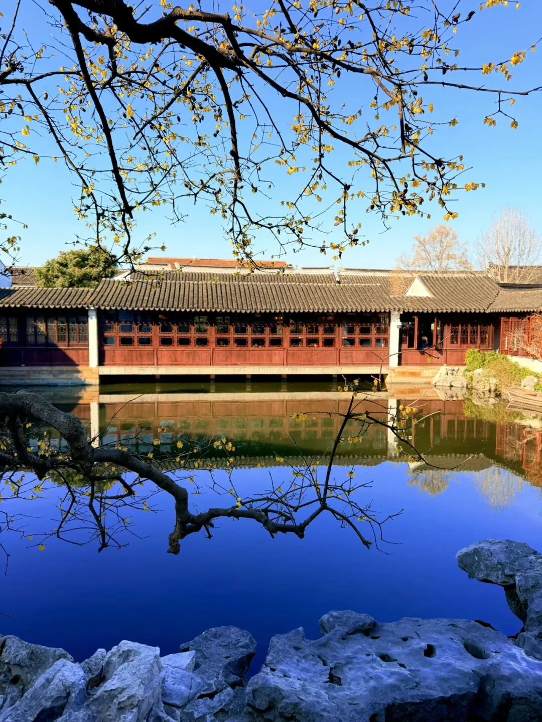 3️⃣艺圃:临水腊梅和红梅