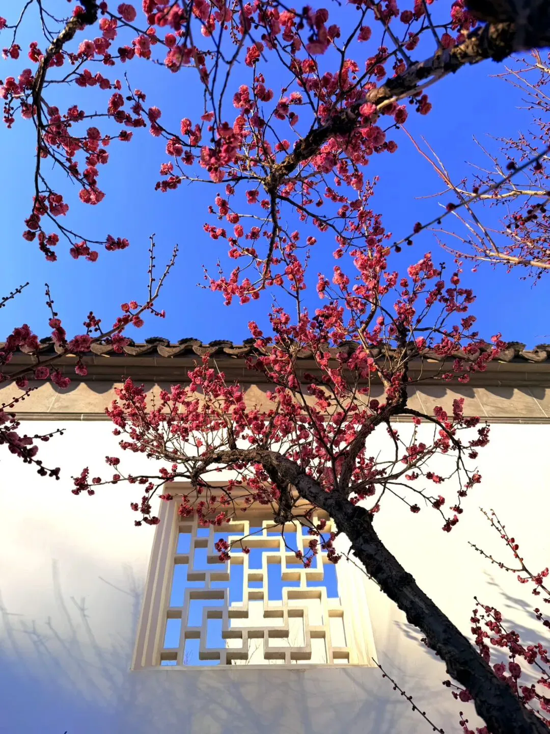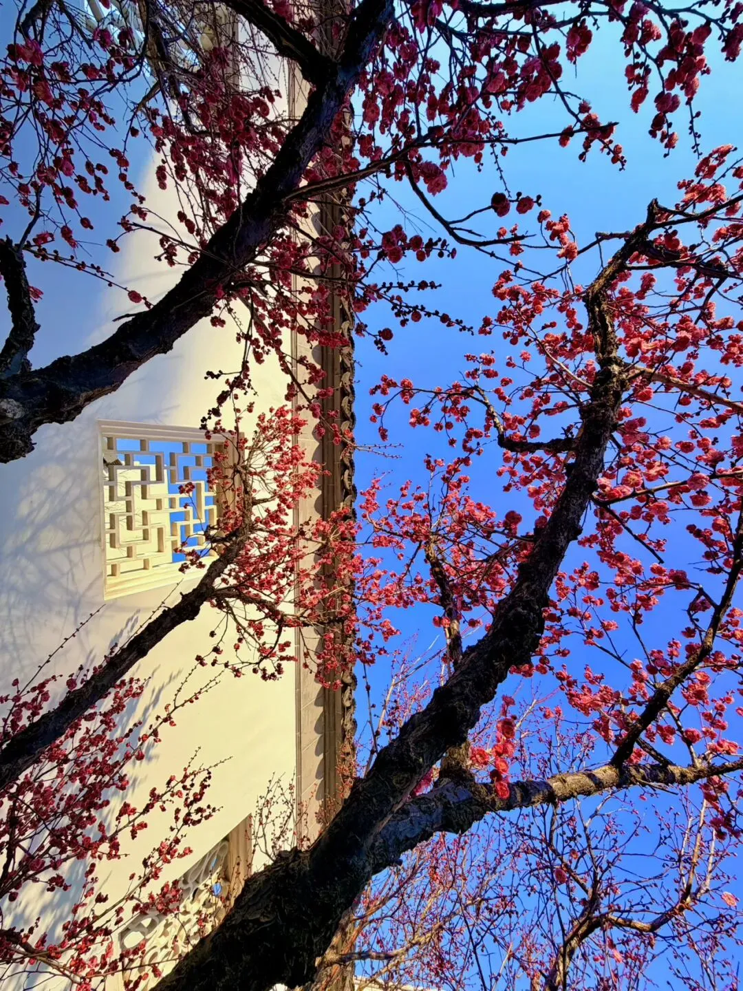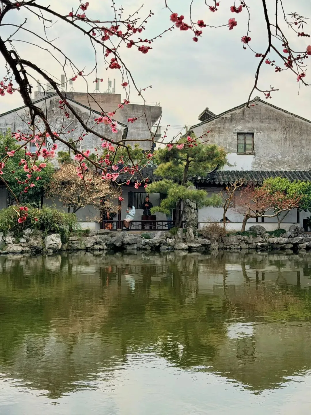 艺圃的梅花主要分布在水池周边,临水而栽,能拍出花影与古建倒映水中的经典画面。