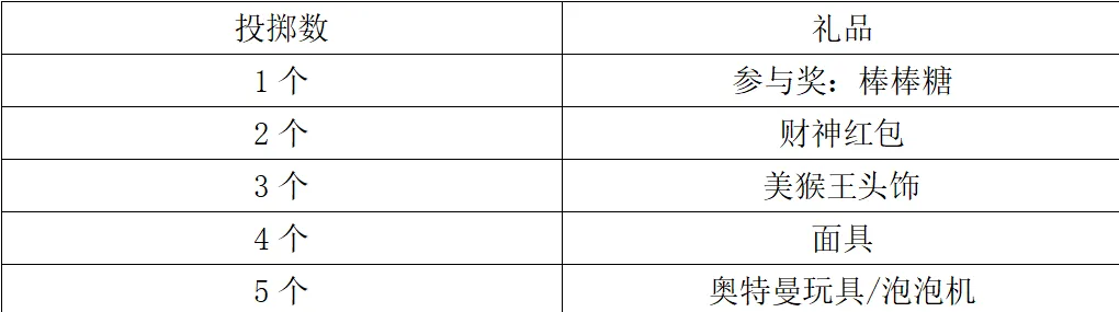 儿童乐园农趣大闯关处,全天开放的投壶游戏带你感受传统民俗的魅力!游客可免费参与1次,每人领取5个沙包,根据投中数量获得奖励,投入三个及以下获得棒棒糖一份,投中五个获得财神红包一个。