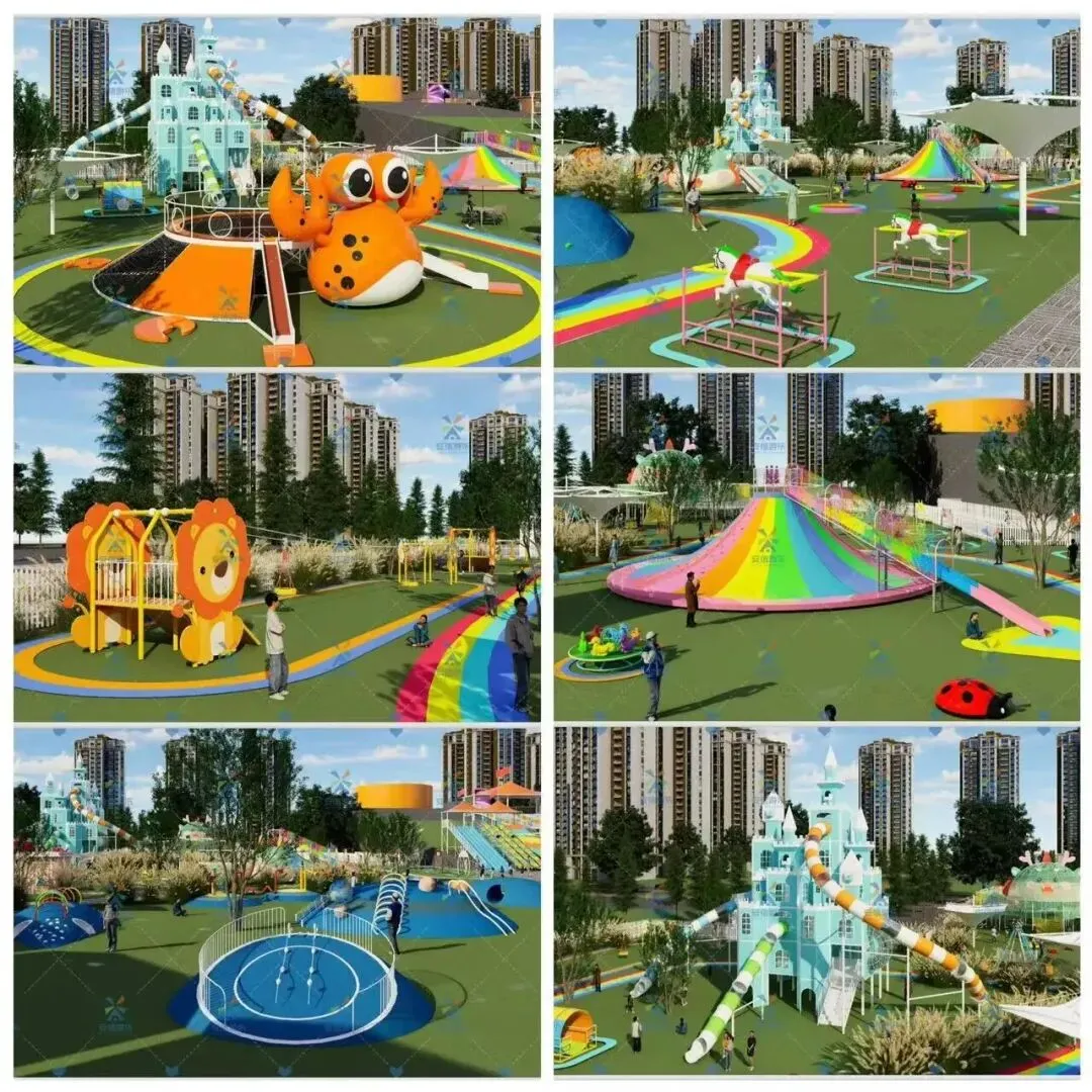 在甲壳虫运动乐园内打造冰雪嘉年华,在草坪西南侧搭建微型雪坡,用于嬉雪园雪圈游玩,然后在草坪北侧搭建雪屋、木屋、圣诞树等元素为主的雪景打卡区域。
