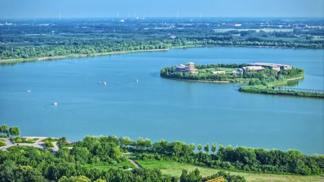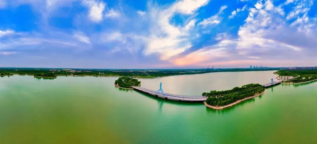 双海湖风景区是一处集生态观光、文化体验、休闲度假于一体的综合性城市公园,也是高唐县首个国家AAAA级旅游景区。景区总占地面积千亩,以“湖光水色+艺术人文”为核心定位,巧妙融合了自然湿地风光与深厚的书画艺术底蕴。