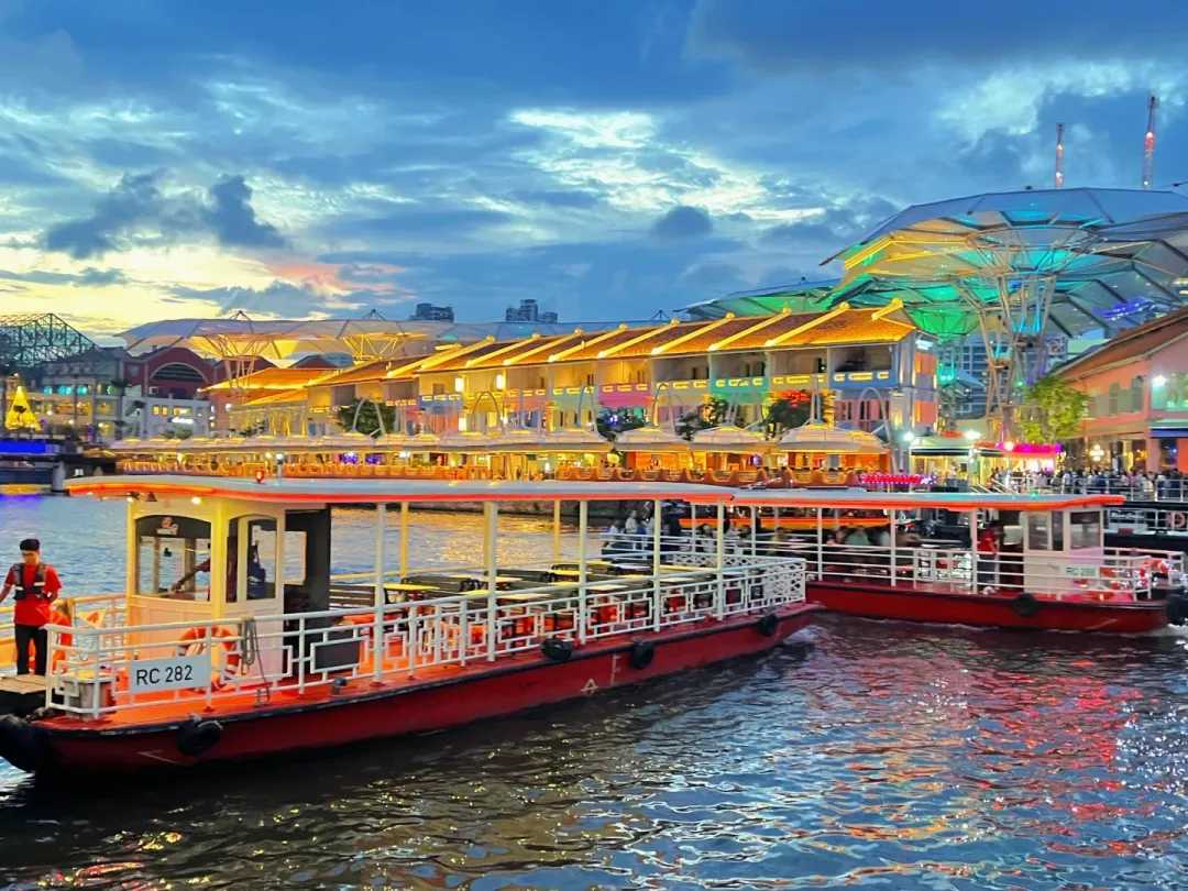 当夕阳🌅染红新加坡河,克拉码头的霓虹灯开始闪烁,河水中倒映着五光十色的灯影,船只驶过,仿佛走进了一座流动的画廊🖼️