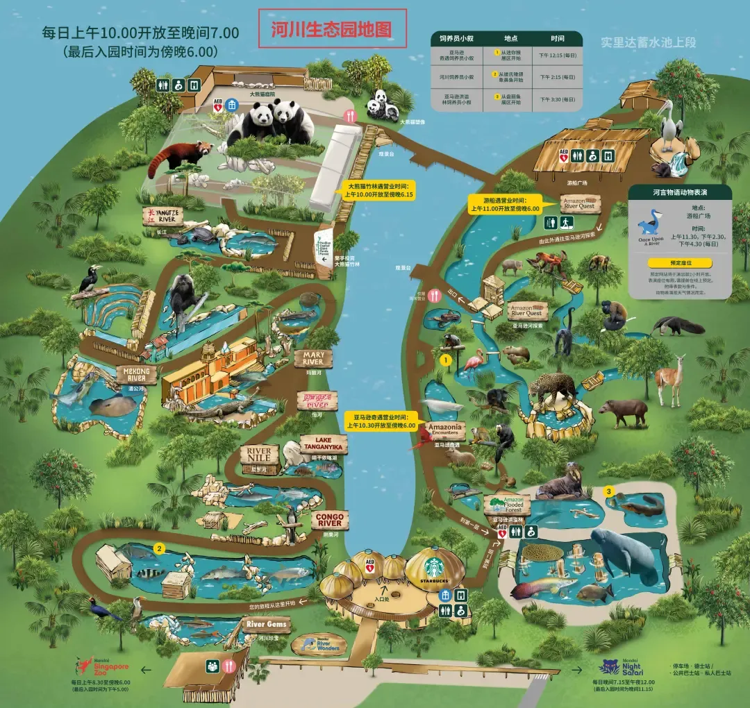 ✅River Safari 河川生态园:就在旁边,有熊猫和船游项目。乘坐亚马逊游船,沉浸式穿梭各类河川景观,还能打卡大熊猫、小熊猫的萌趣瞬间,国宝粉别错过。