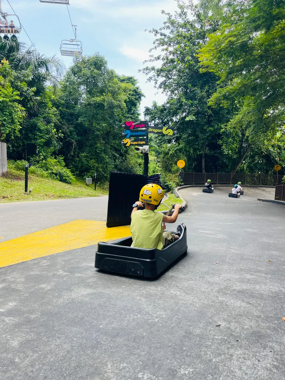 乘坐滑行车从山顶滑至山脚,全程丝滑超解压,唰唰的速度感超爽。