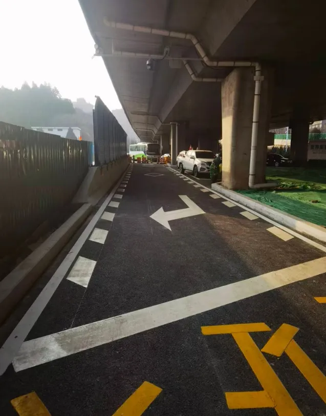 二环东快速路是贯穿市区南北的交通大动脉,旅游路是经十路南侧重要的东西向主干道,二者交汇的二环东快速路旅游路下匝道,是区域交通转换关键节点。此前,该下桥匝道右侧车道为公交车专用道,社会车辆需借道右转通行。直行方向遇红灯时,公交车排队等候易导致后方社会车辆滞留,高峰时段拥堵问题尤为突出,不仅使匝道分流功能未能充分发挥,更制约了南绕城高速、二环南快速路、经十路等主要道路的衔接联动效率。
