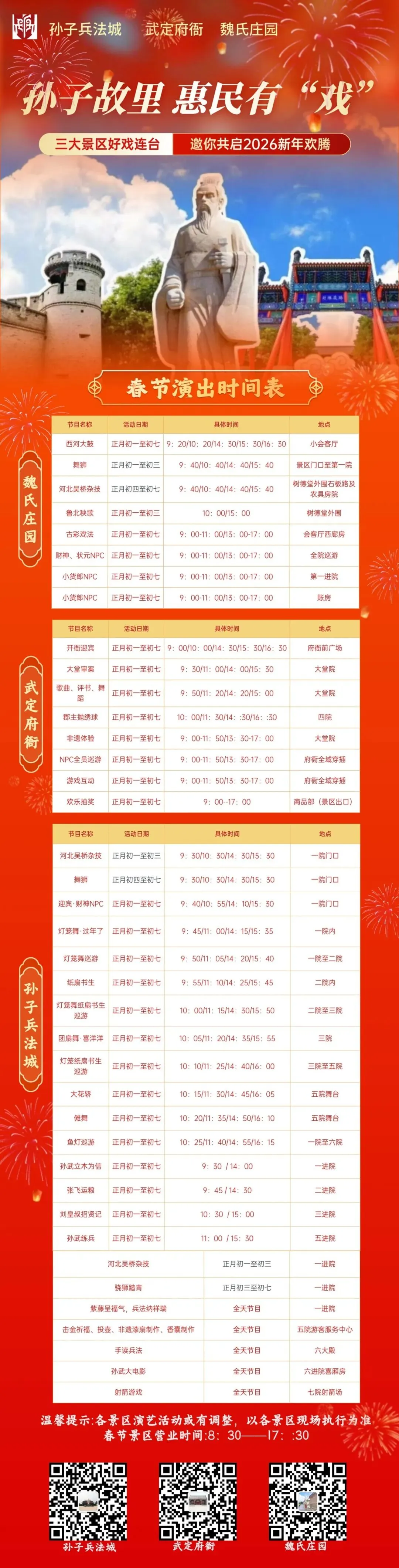 赏古建之美,品民俗之趣,感文化之厚,享新春之乐。这个春节,相约孙子故里,看三大景区好戏连台,共赴一场热气腾腾、喜乐安康的幸福中国年!