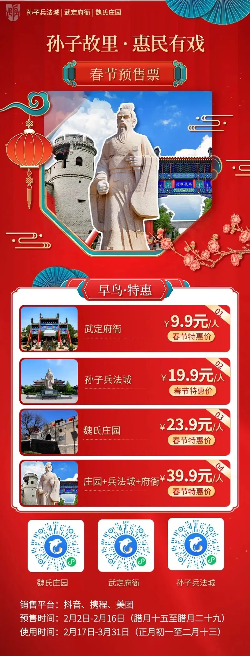 这个春节,不必远游,赴孙子故里——惠民,看三景区好戏连台,赏民俗大戏,享阖家欢趣,在千年兵学、明清府衙、百年庄园里寻地道年味,在新春文化盛宴中共度幸福中国年。