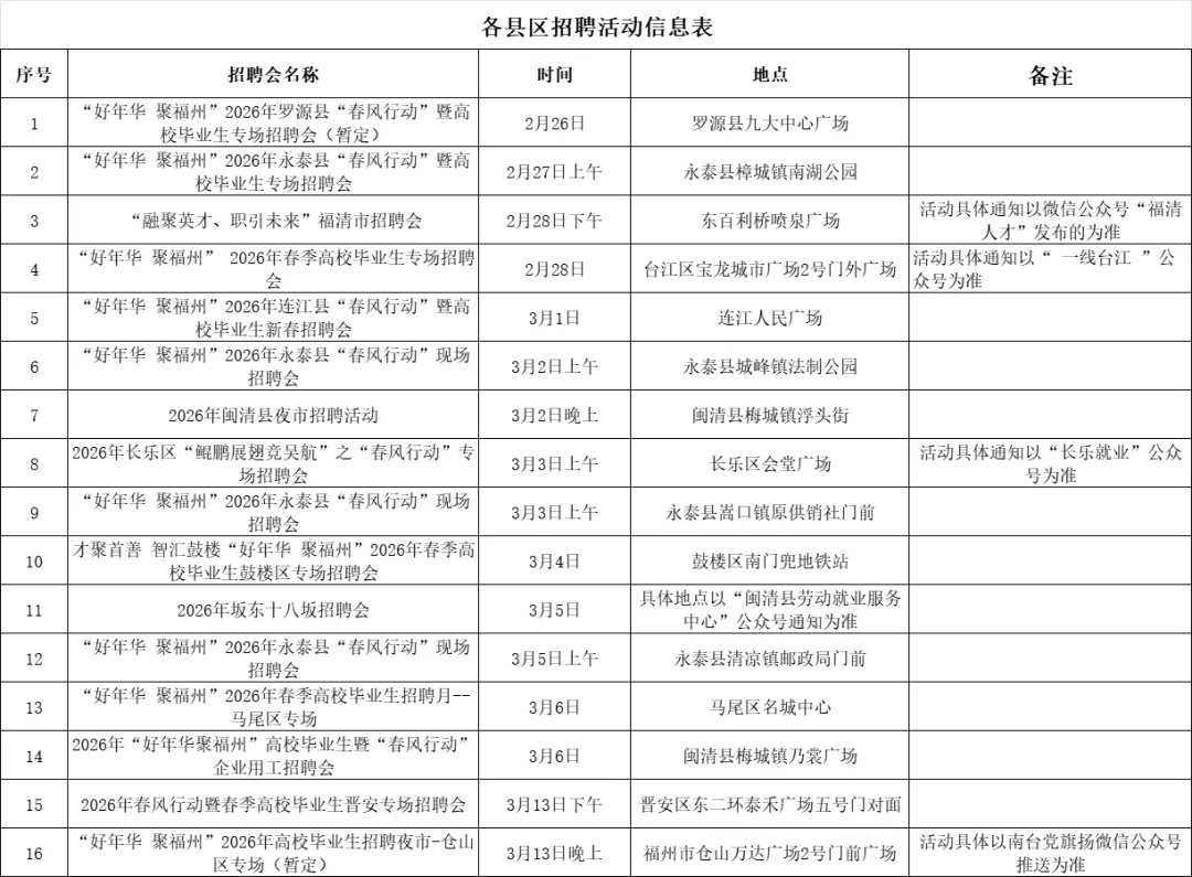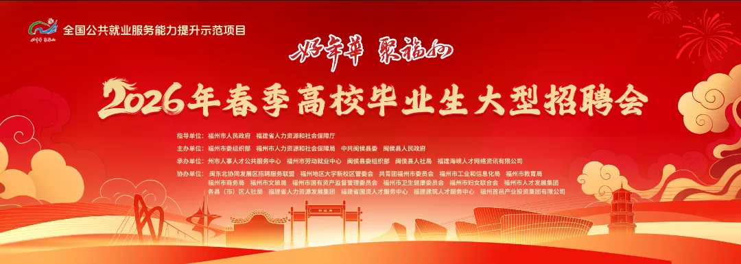 2月26日(正月初十,星期四)下午2:30-5:00,“好年华 聚福州”2026年春季高校毕业生招聘月启动仪式暨福州市春季高校毕业生大型供需对接会,将在闽侯县旗山湖公园盛大开启!作为福州引才聚才的特色品牌活动,这场招聘会精准拿捏毕业生返乡、企业开工的黄金窗口期,政校企三方发力,线上线下全域联动,不管是高校毕业生、技能人才,还是想在福州解锁新职业的求职者,这波福利满满的“职”面之约,错过真要等一年!
