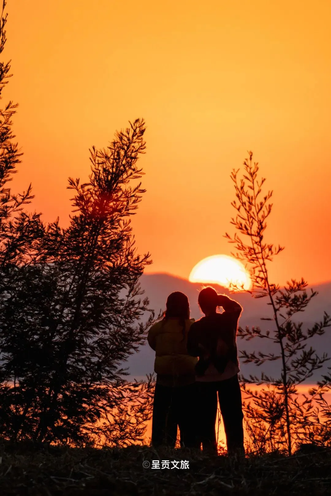 当霞光铺满天空,湖与城在脚下安静展开,夕阳缓缓沉入湖面。站在这里,看一场从高处展开的日落,新年的时光仿佛也被拉长,温柔而从容。