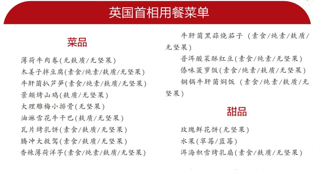 提供“首相同款”菜品