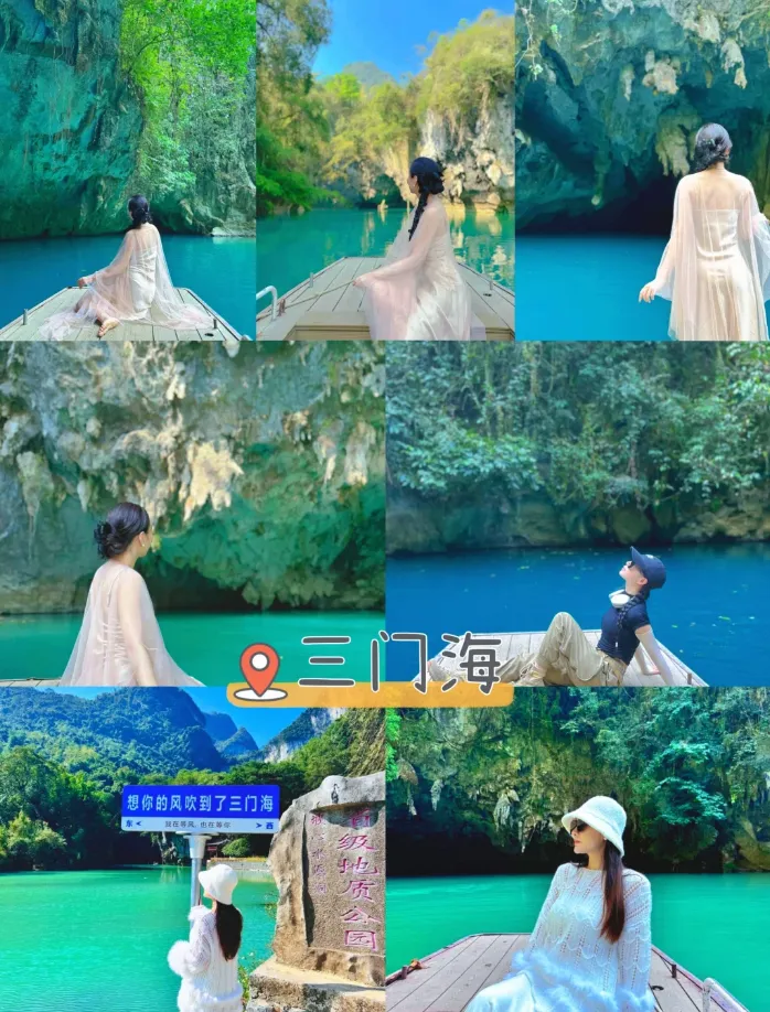 三门海是目前世界上唯一的水游天坑景区,三个天窗并列相连,碧绿的水面倒映着穹顶的光。