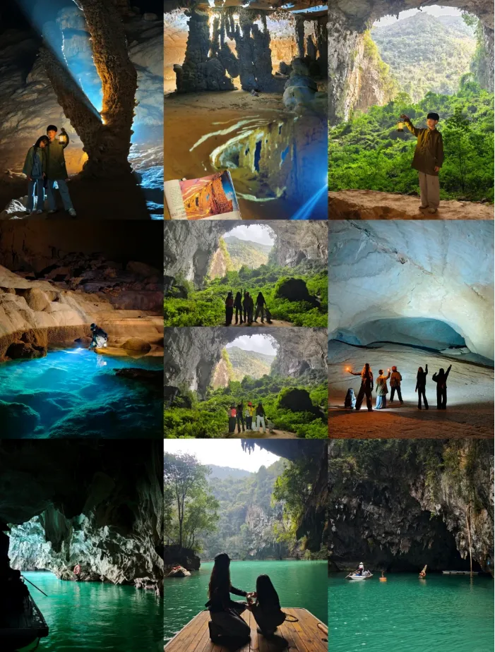 船桨轻划,驶入幽暗的溶洞,再穿出时,头顶又是一方天光。明与暗交替,仿佛穿越了时间本身。