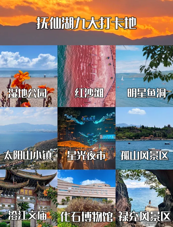 ✅ 交通攻略:昆明南站高铁至澄江站(约30min),转公交或打车至抚仙湖(约15min)