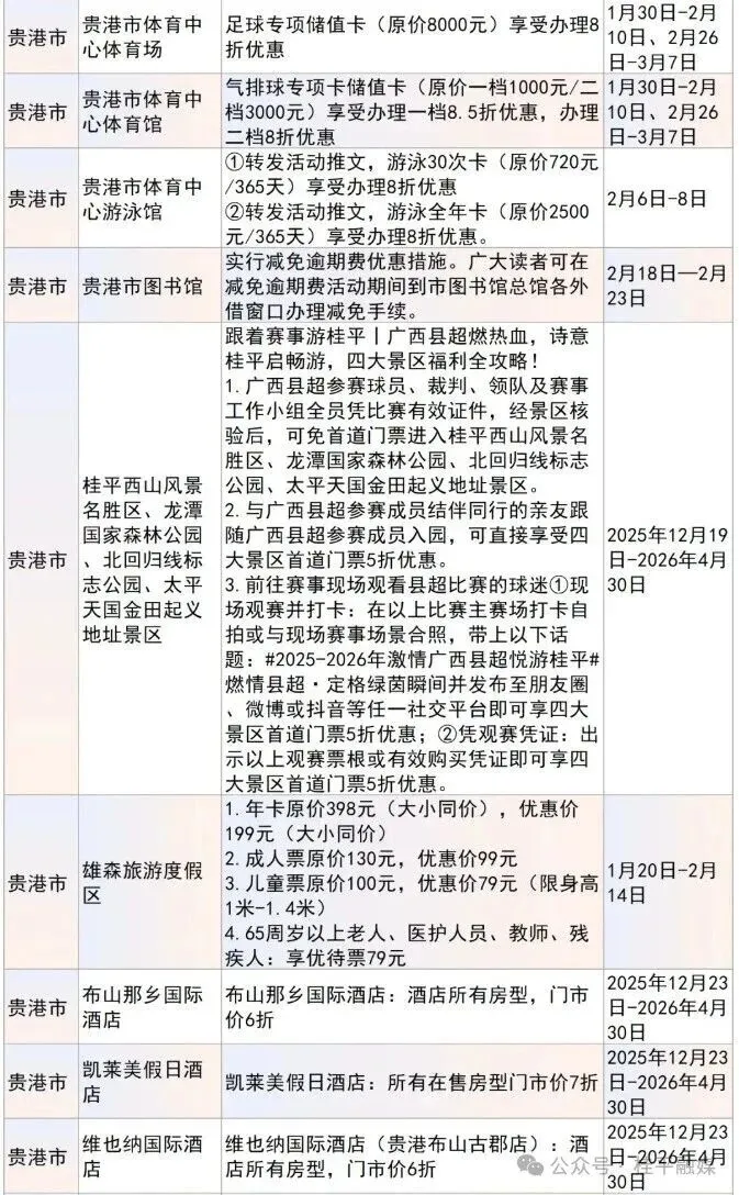 贵港市最全文旅优惠