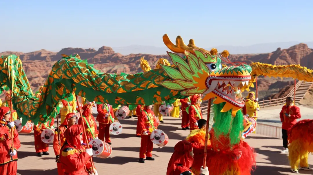 春节期间,景区在1号观景台精心设计了互动游戏活动,包括摇筛子抽奖、幸运大转盘、投壶比赛和传统猜灯谜。除了互动游戏,正月初五至十五期间,甘州区社火民俗表演团队每天上午11:00至14:00在1号观景台为游客带来舞龙、舞狮、社火表演,让游客们亲身感受了浓厚的年味和民俗魅力。