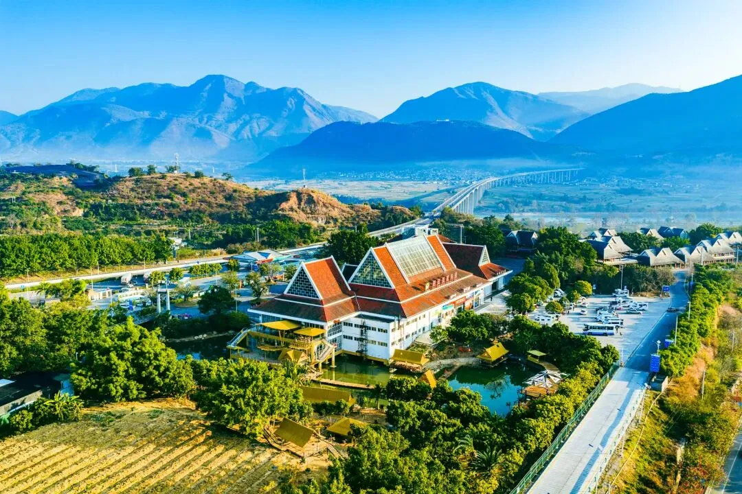 步入服务区,“世界咖谷・边城水寨”的意境徐徐展开。傣族水寨风貌的建筑错落有致,吊脚楼与透明穹顶相映成趣,水景湖区与热带河谷风光交织如画,形成一步一景的开放式空间。云南公路馆内陈列的历史文物,生动讲述着滇缅公路的峥嵘岁月与交通变迁;依托惠通桥湖区打造的民族旅拍基地,融入傣族服饰与非遗文创元素,已成为游客喜爱的打卡点。