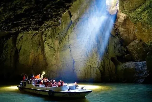 九洞天景区以“一河九天窗”的喀斯特地貌闻名于世,六冲河伏流贯穿九个天然溶洞,形成“明暗交替、如入仙境”的独特景观,其中第九洞天“大观天”以其雄伟著称,洞内宽阔,可容千人以上,堪称喀斯特地貌的精华之作。此次新春活动,巧妙将苗族文化与喀斯特生态景观相结合,打造出“自然奇观+民族文化”的稀缺体验。