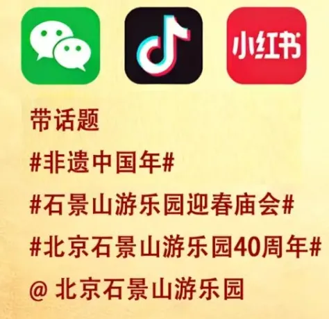 👉基础福利:社交平台发布乐园相关老照片/合影/打卡照+真实故事,带指定话题并@北京石景山游乐园官方账号,截图发送至北京石景山游乐园公众号可领庙会门票3张