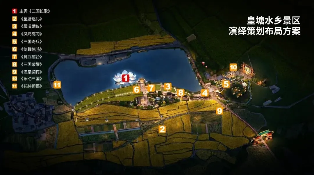 沿沟渠、道路、机耕道精心布局的休闲营地,让游客无需奔波,就能就近欣赏湖光山色与舞台演出。在这样的环境中,游客可以实现“居于此、赏于此”的松弛感,沉浸式感受人与自然的和谐共生。无论是和家人一起在这里小憩,享受温馨的亲子时光,还是和好友相聚,畅谈人生,都能找到专属的休闲角落。湖泊之上搭建的湖心浮岛舞台,更是一大亮点。将以三国、汉文化为内核,融入动漫、玄幻等现代元素,打造出专属皇塘的特色主题演出。在水光山色间,历史与现代相互碰撞,游客可以沉浸式感受文化的魅力。
