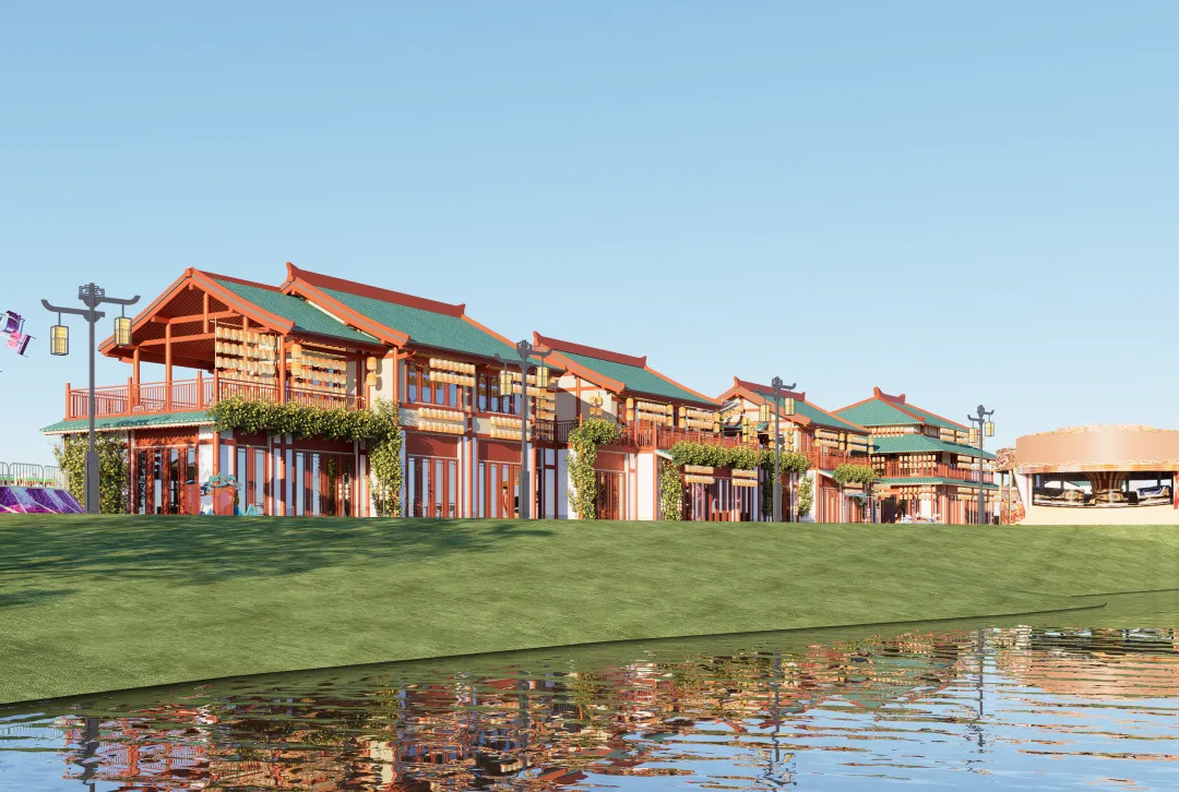 以汉文化、三国文化为核心,皇塘景区将现代潮流元素与之融合,让文化不再是静态的陈列,而是可看、可玩、可互动的沉浸式体验。景区入口新建汉代风格大门,朱红飞檐、青砖黛瓦,瞬间将游客带入千年汉韵风华之中。那种独特的氛围感,仿佛让人穿越时空,回到了那个辉煌的时代。核心节点改建的多座汉代风格商亭,单层或二层钢结构设计,屋顶露台可俯瞰全景,搭配精致立面与夜景灯光,传统美学与现代设计完美融合。游客在这里随手一拍,都能拍出古风大片,留下美好的回忆。