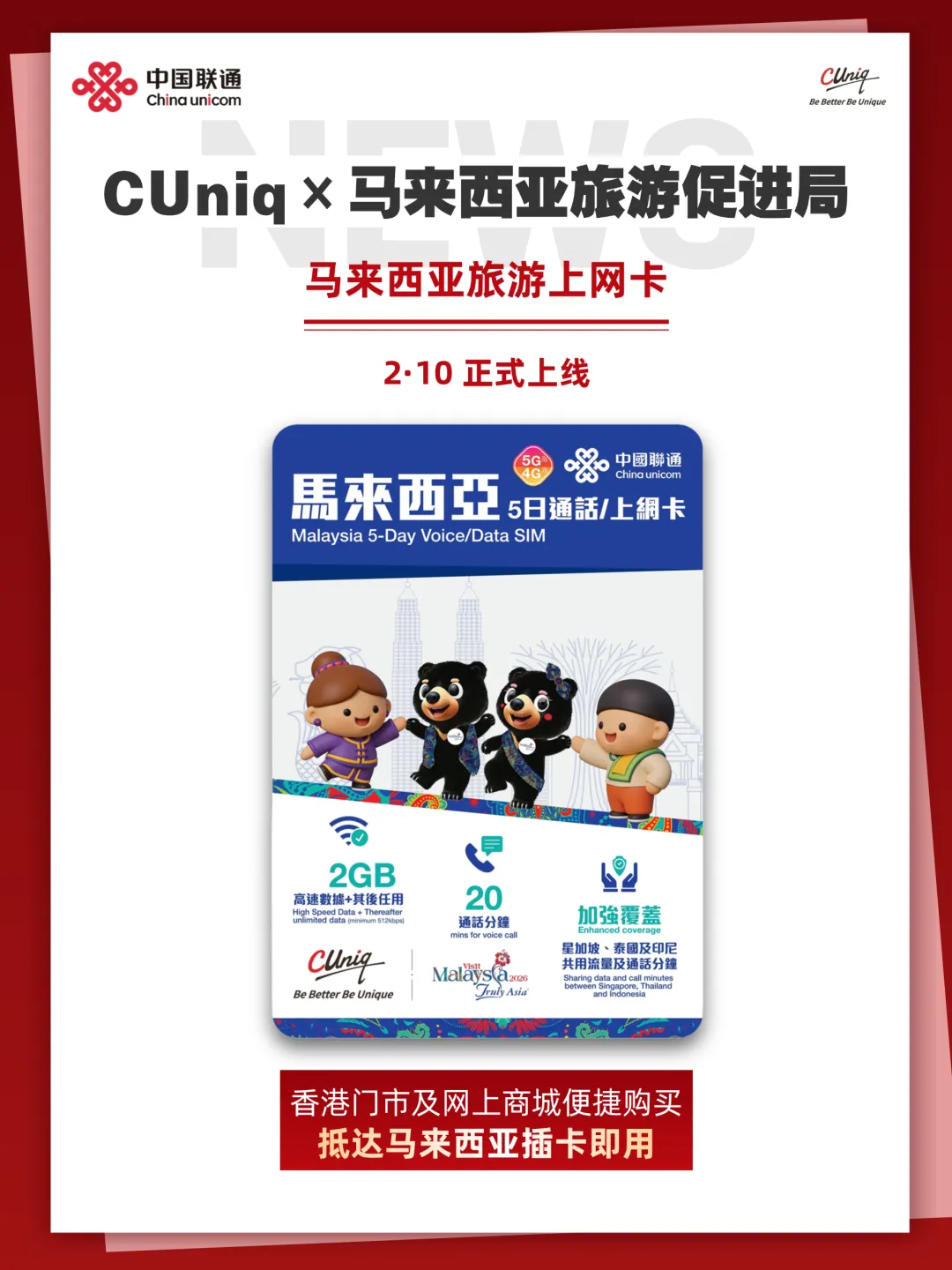 CUniq「马来西亚旅游上网卡」 正式上线!助力2026马来西亚旅游年