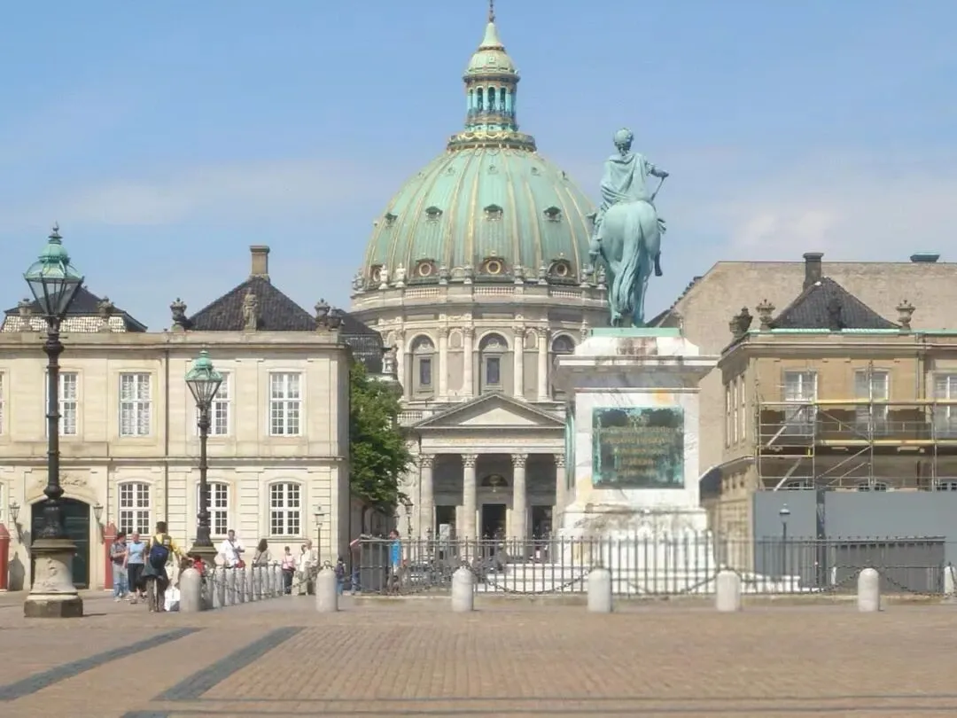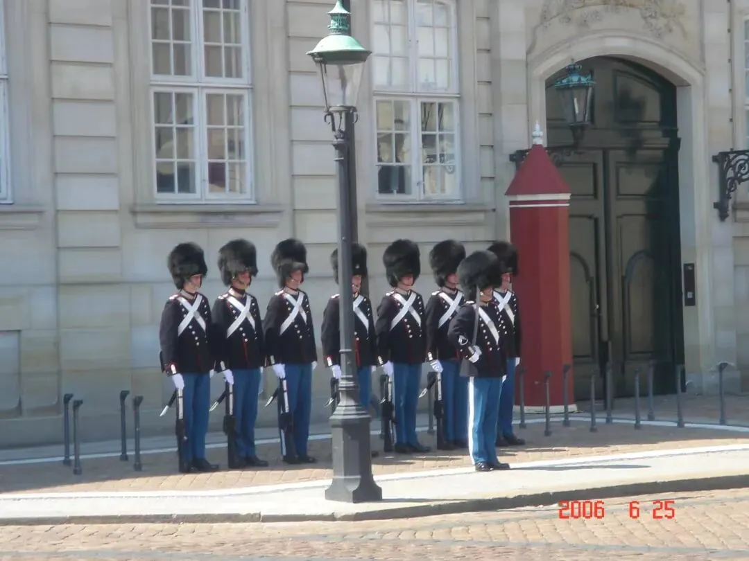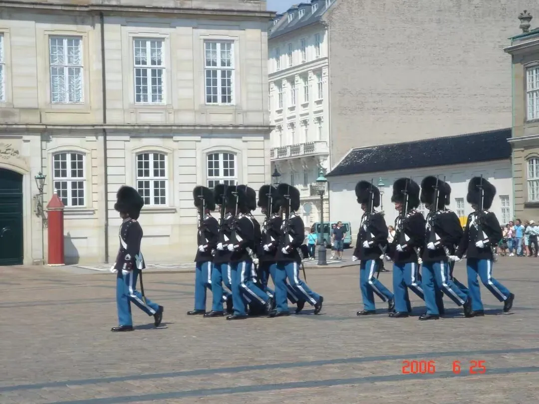 而最吸引人的,还是阿美琳堡宫,丹麦王室主要居所。每日中午的皇家卫兵换岗仪式,吸引了不少游客。若宫殿上方旗帜升起,则表示女王在家。