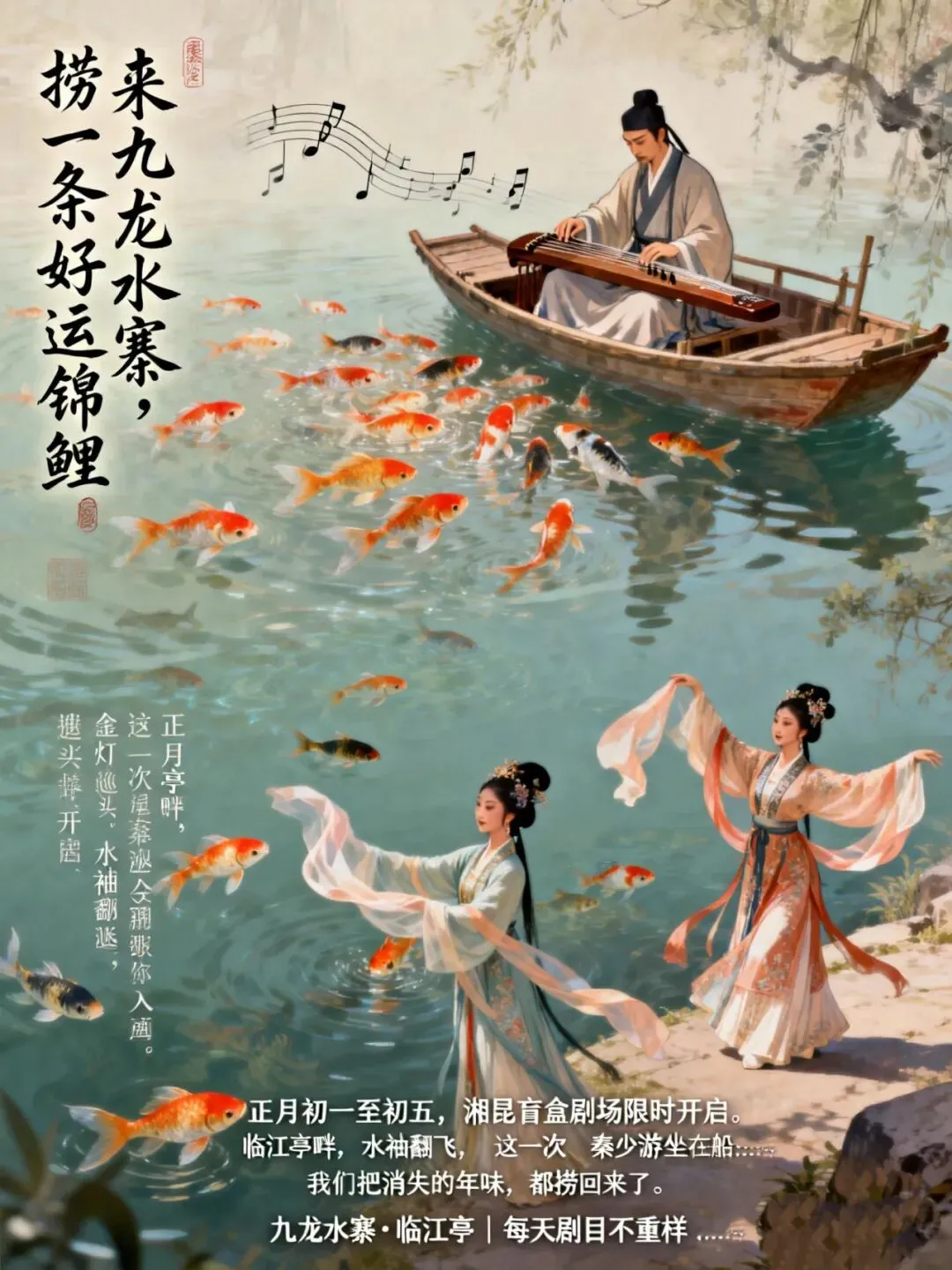 10:30 | 湘昆盲盒:2月17日-2月21日(农历正月初一至初五),在九龙水寨临江亭的纱幔雾气中,每天掉落不同剧目《游园惊梦》、《醉打山门》等 。