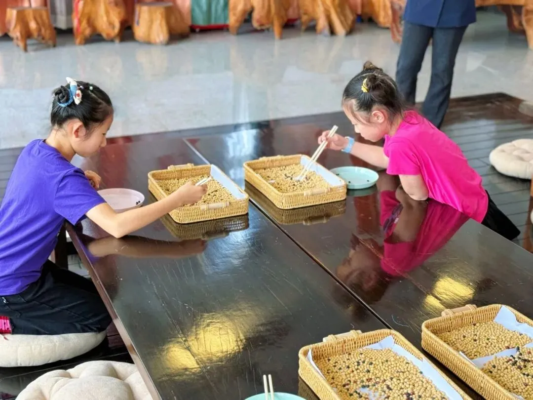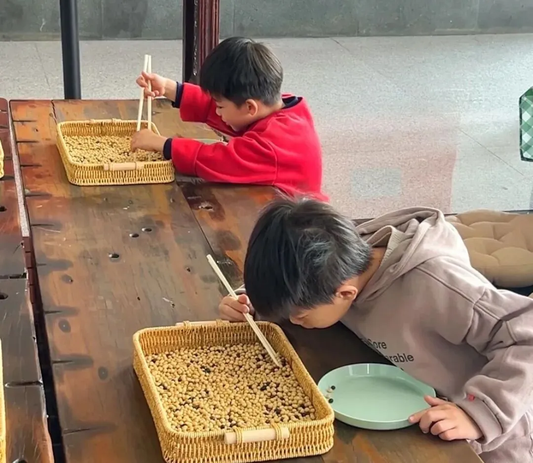 还可以体验夹黄豆活动
