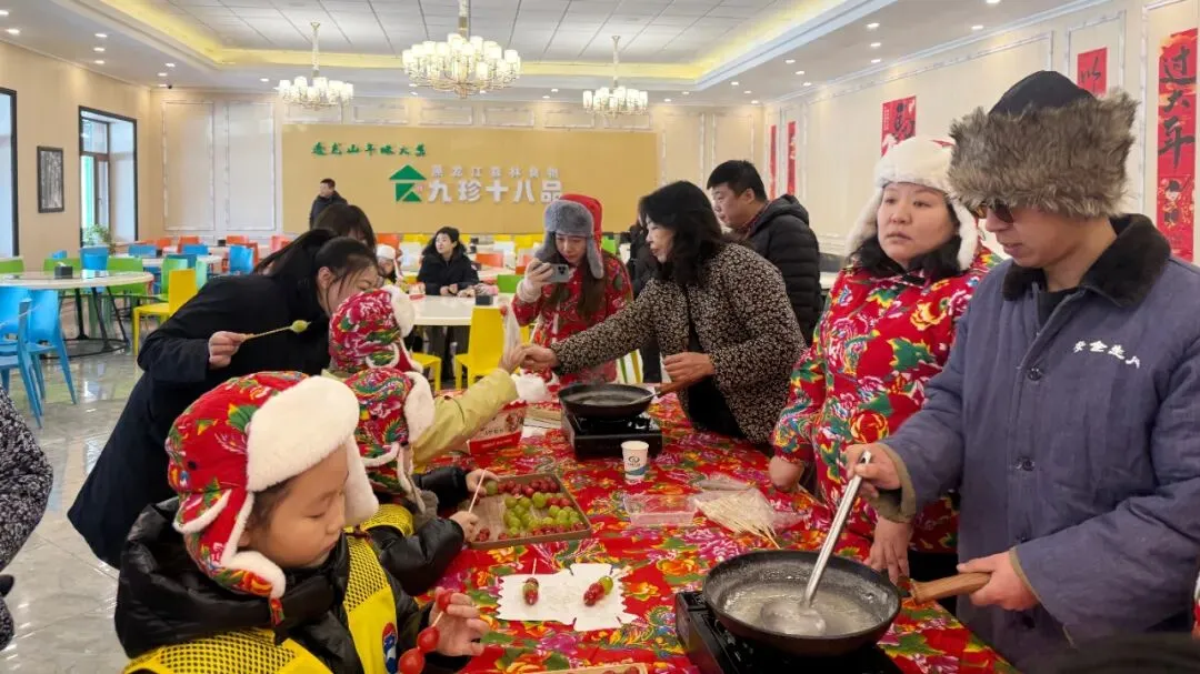 民俗体验区里,浓浓的东北年味扑面而来,成为孩子们感受东北文化的生动课堂。蘸糖葫芦时,孩子们小心翼翼地将山楂串裹上晶莹的冰糖,酸甜的滋味在舌尖化开,满满的都是童年的甜蜜;包饺子环节中,大家围坐一桌,擀皮、填馅、捏合,尽管包出的饺子形态各异,但每个人都乐在其中,在动手实践中体会传统美食的魅力;红纸上,孩子们手握毛笔认真书写春联,一笔一划间,不仅感受着中华传统文化的博大精深,更把对新年的美好期许凝于笔墨。野外烤馒头则让孩子们体验到了别样的户外乐趣,炭火烘烤后的馒头金黄松软,香气四溢,在冰天雪地里品尝这份温暖,别有一番风味。