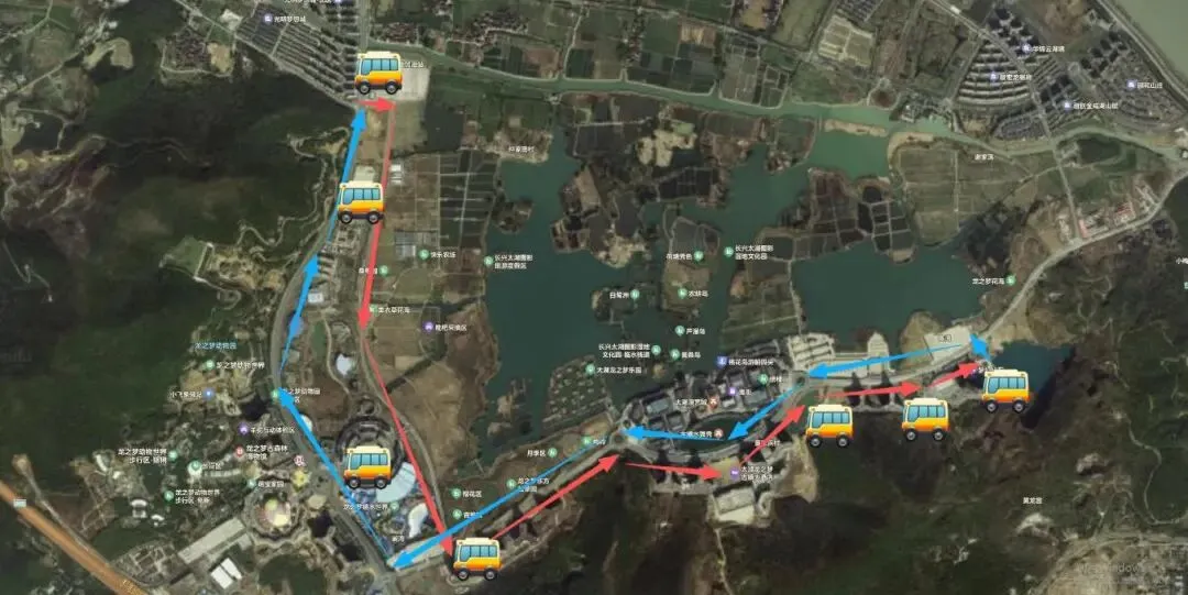 当景区车流量较大时,进行临时管控,公交车路线行驶图调整如下: