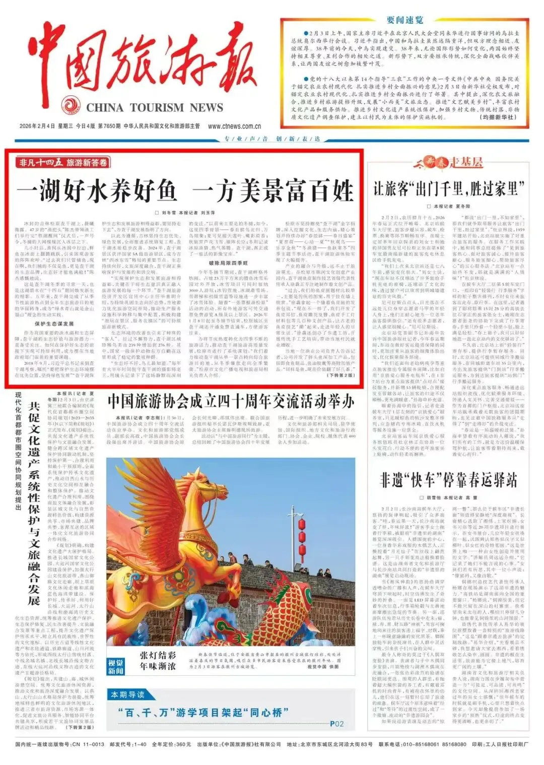 中国旅游报头版聚焦吉林查干湖
