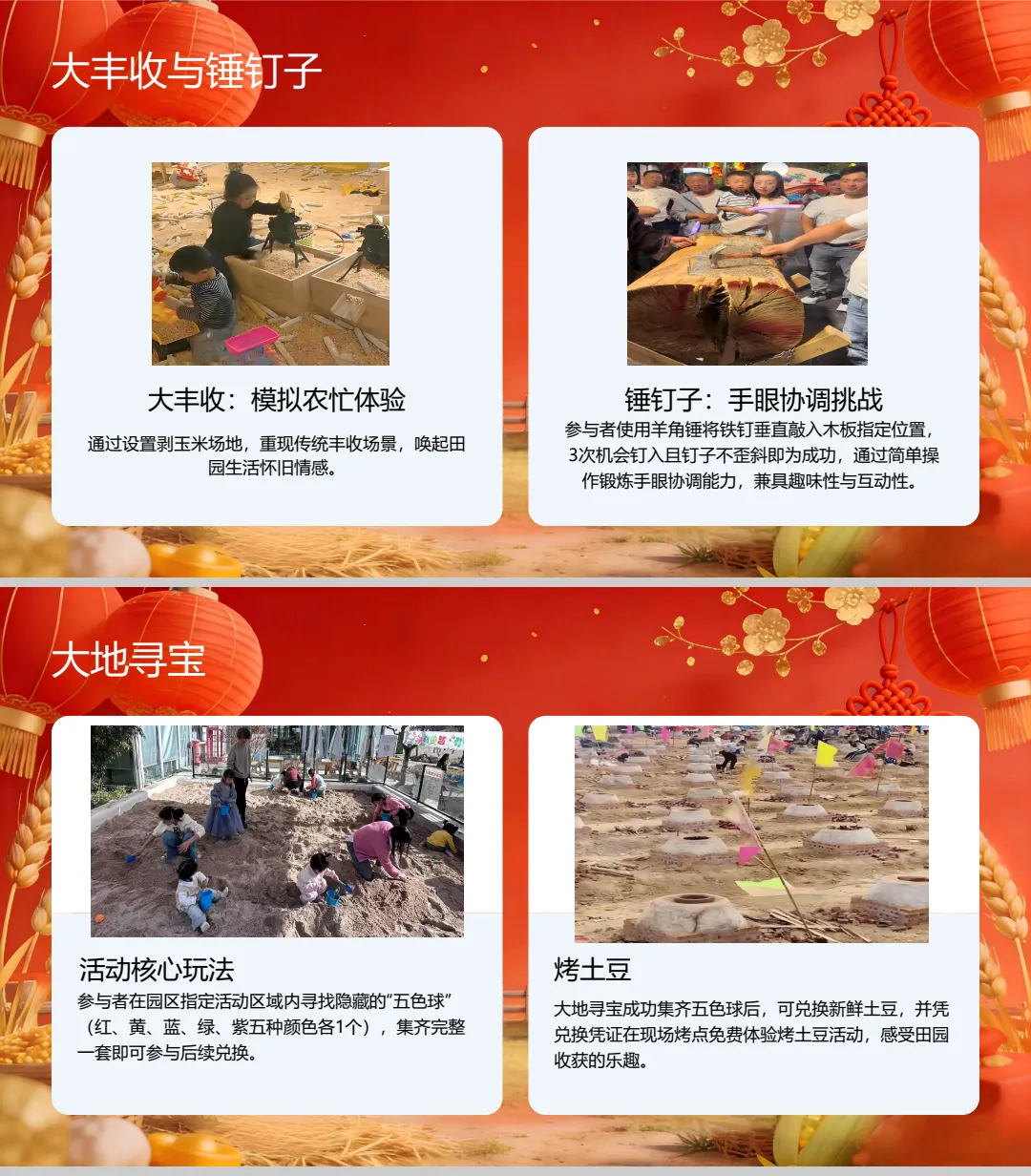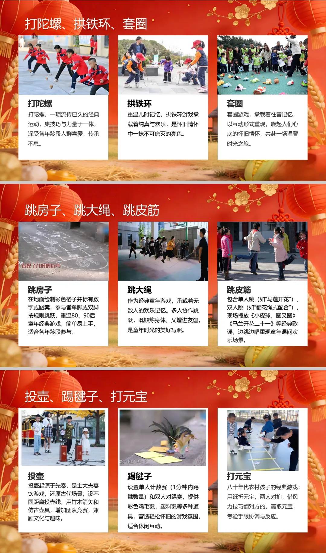 具体活动时间从2月17日至23日(农历正月初一至初七),每天上午9时至下午5时,田园里景区将为大家准备了迷宫抓鸡、脚踢台球、大弹弓、打陀螺、拱铁环、套圈、跳房子、跳大绳、跳皮筋、打元宝、鸡毛蒜皮、大地寻宝、烤土豆等丰富多彩、最接地气的游戏活动。