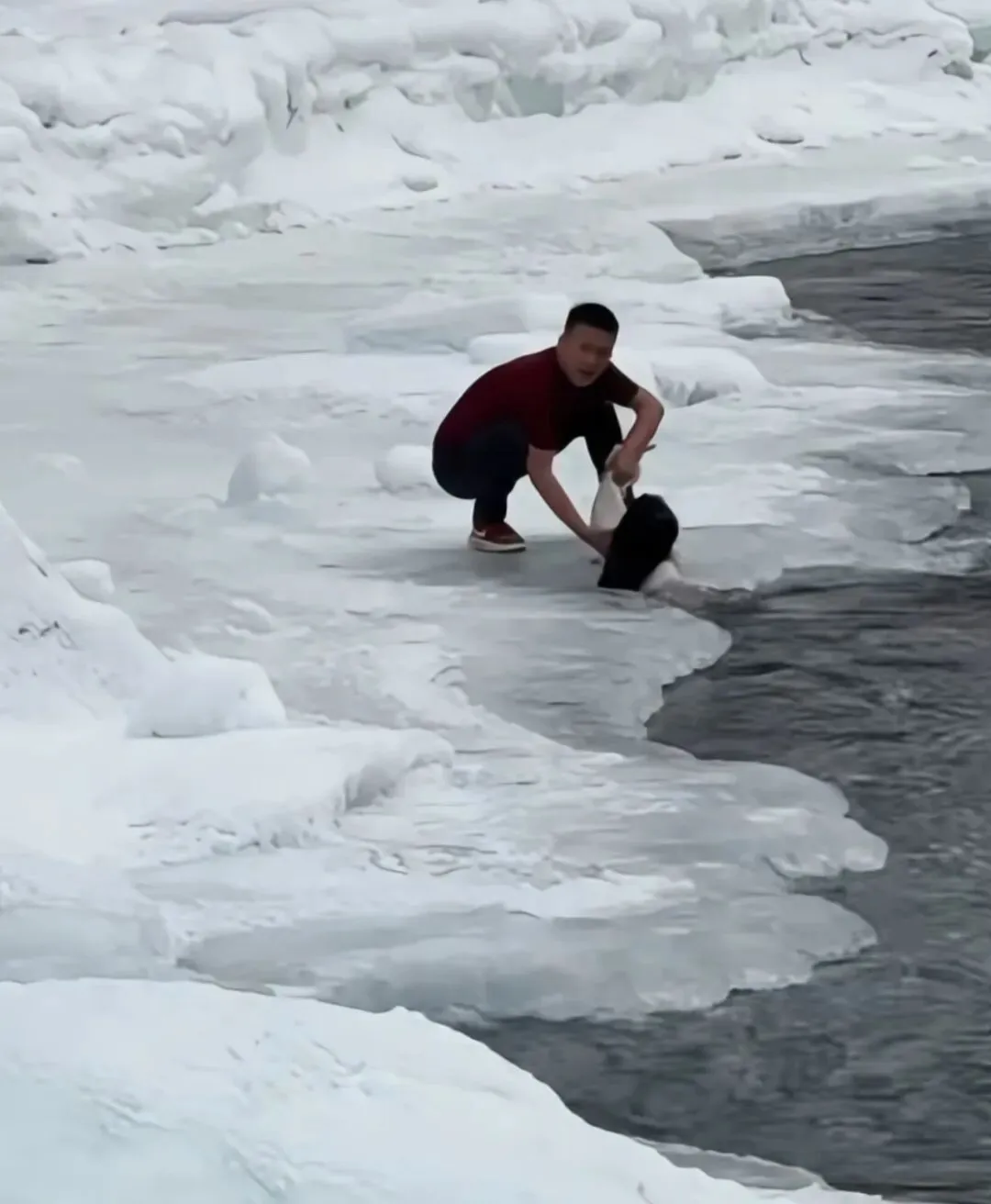 一名目击者告诉记者,救人者是他们车队的驾驶员,“冰冻的河是没有力量走上去的,要不是被抓住,母女两个就被水冲走了。”一名施救者告诉记者,母女平安,已经送医院了,“水特别急,当时想不了那么多,赶紧脱掉外衣去救人,也顾不上冷。”